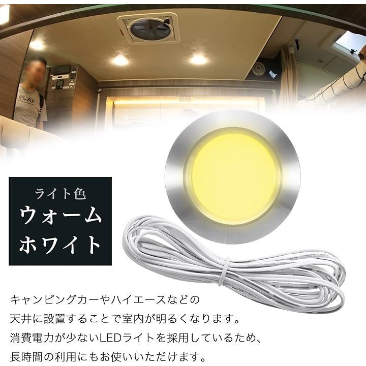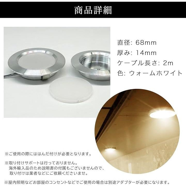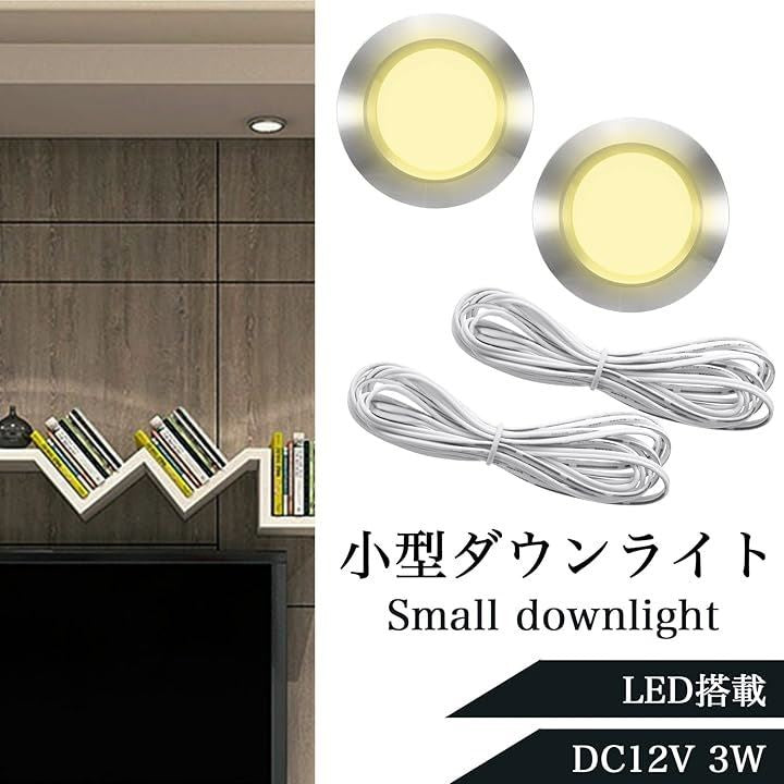 DC 12v ledダウンライト 3W 小型 ウォーム ホワイト 6500K 組立 必要 外寸 68mm 厚さ 14mm 車