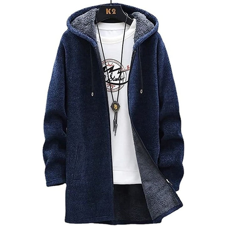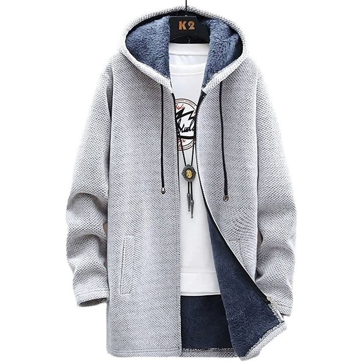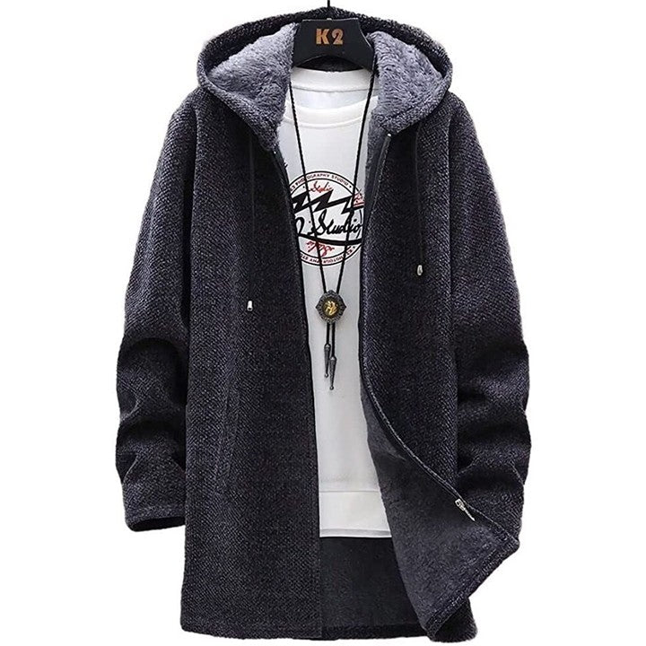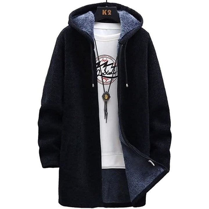 [アスペルシオ] フードつき ジップアップ ロングコート ビター系 お洒落 裏起毛 アウター メンズ 長袖 裏ボア カーディガン ジップアップパーカー ジャケット ストリート系 暖かい |