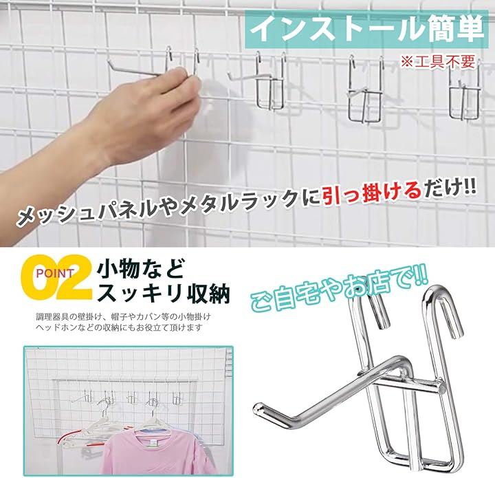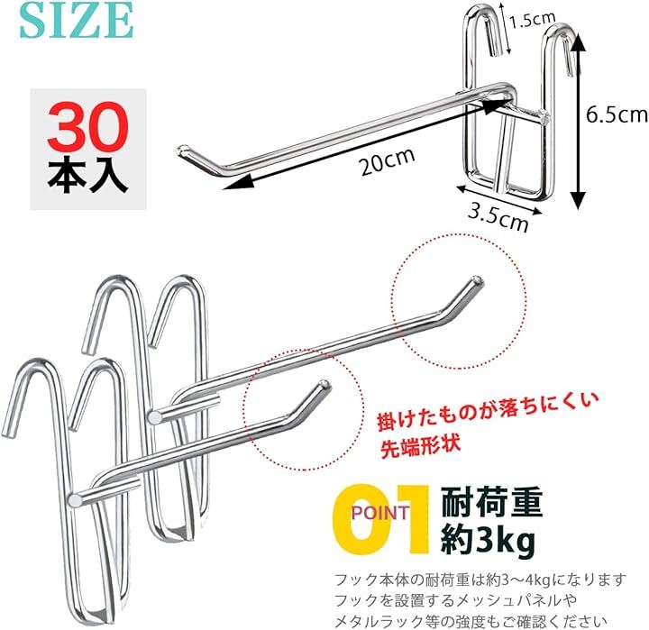 ネットフック ワイヤーネット メッシュパネル ハンガー 収納 展示 ディスプレイ 30本セット