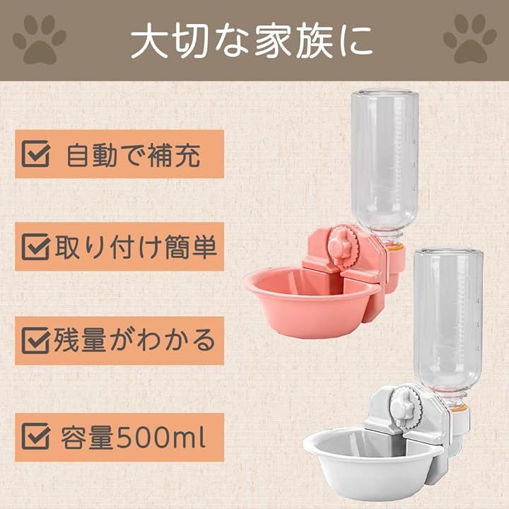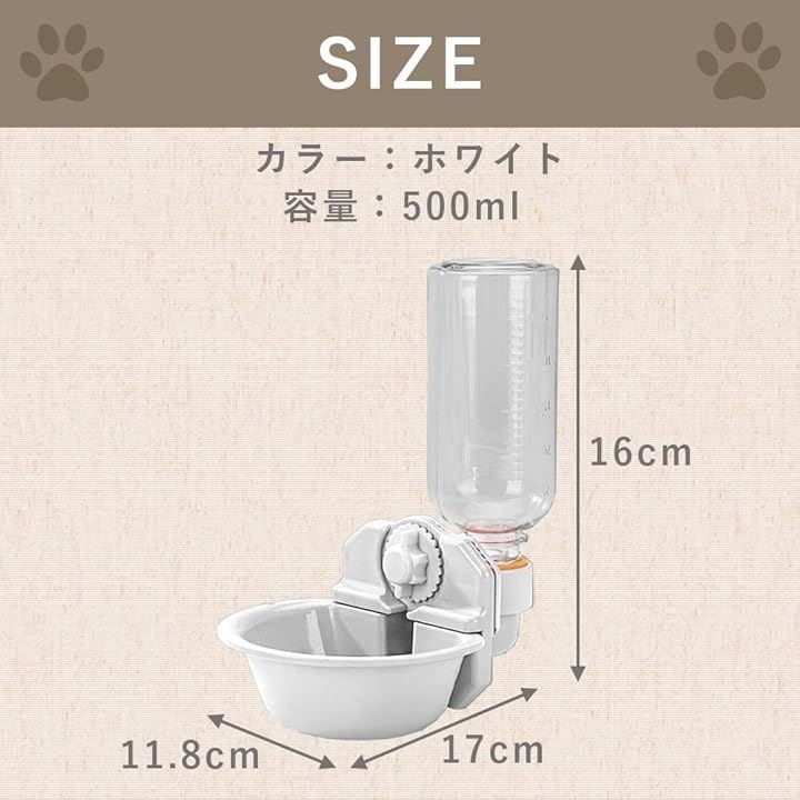 AllBright ペット給水器 犬 猫 水飲みボウル 水飲み器 自動給水器 ケージ ペット用品 ホワイト