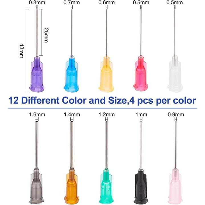 100点10サイズ 接着剤用ニードル プラスチック 201ステンレス針 混合色 混合サイズ 替針