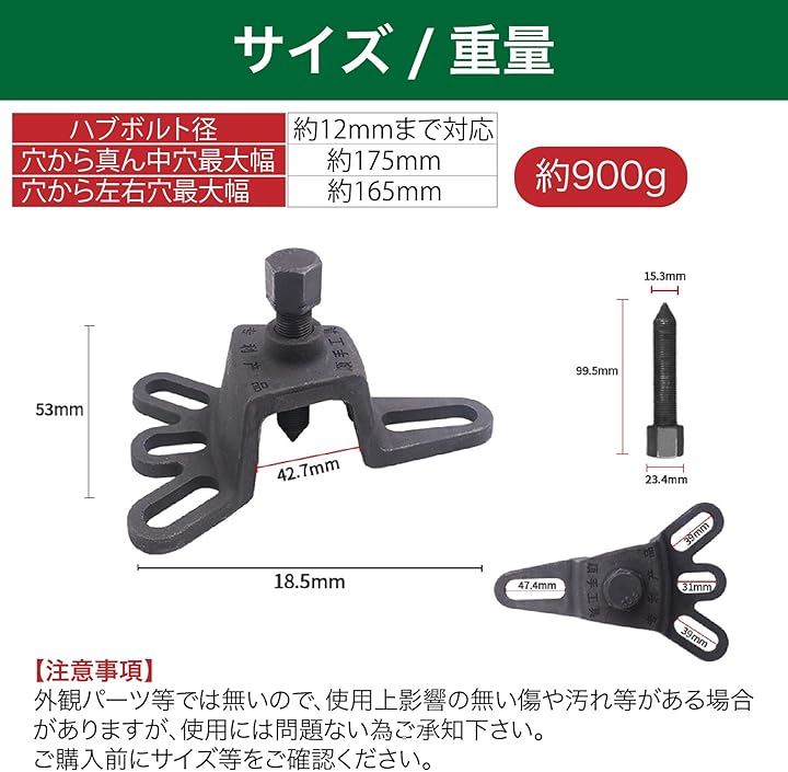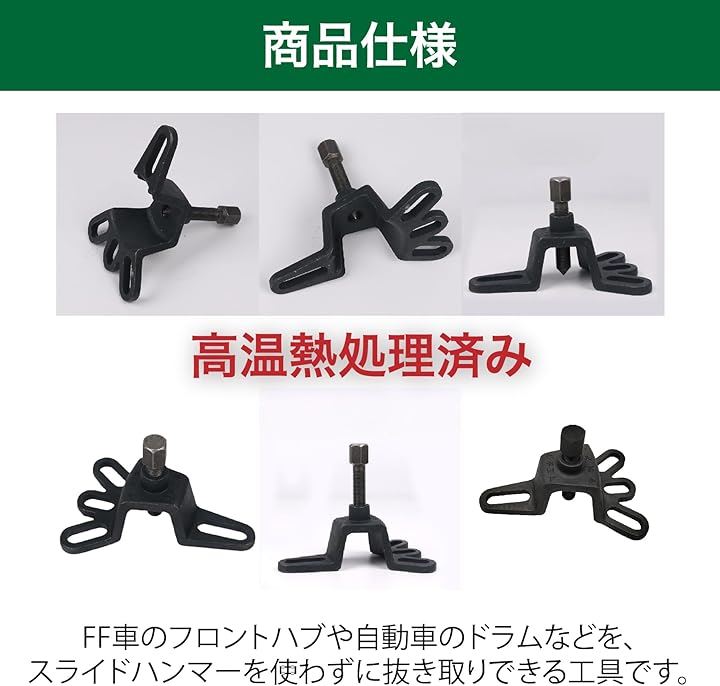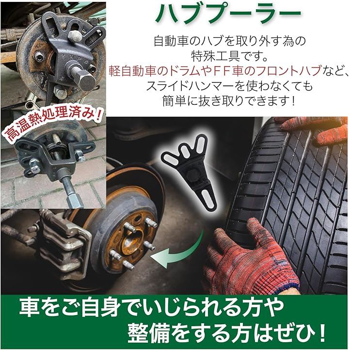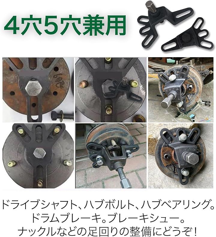 フロント ハブプーラー 4穴 5穴 兼用 工具 解体 修理 ベアリング 交換 ドラム 抜き取り 整備 DIY ブラック