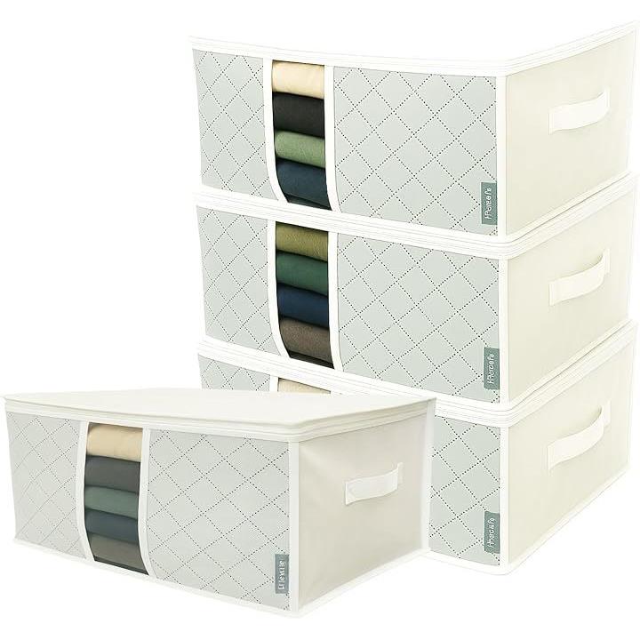 布団収納袋 活性炭シート入 大容量 収納ケース 掛け 敷き布団をまとめてスッキリ 持ち手 透明窓付 通気性の良い不織布製