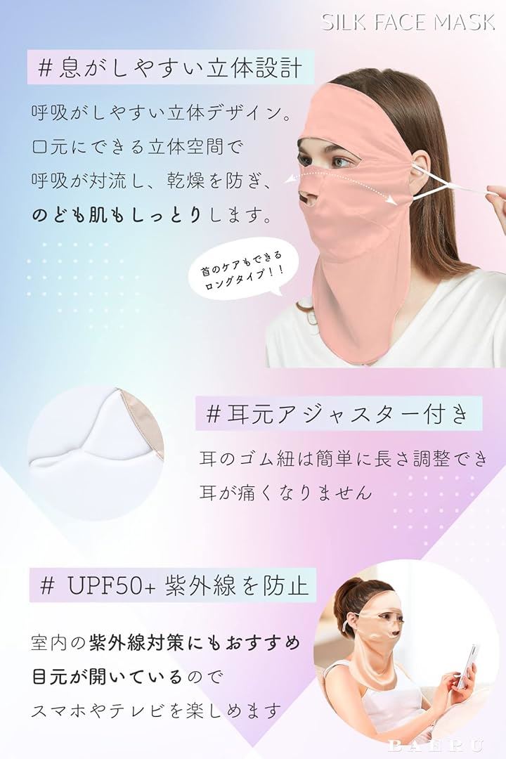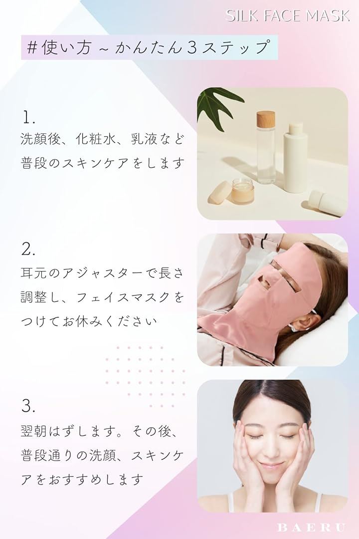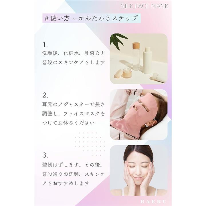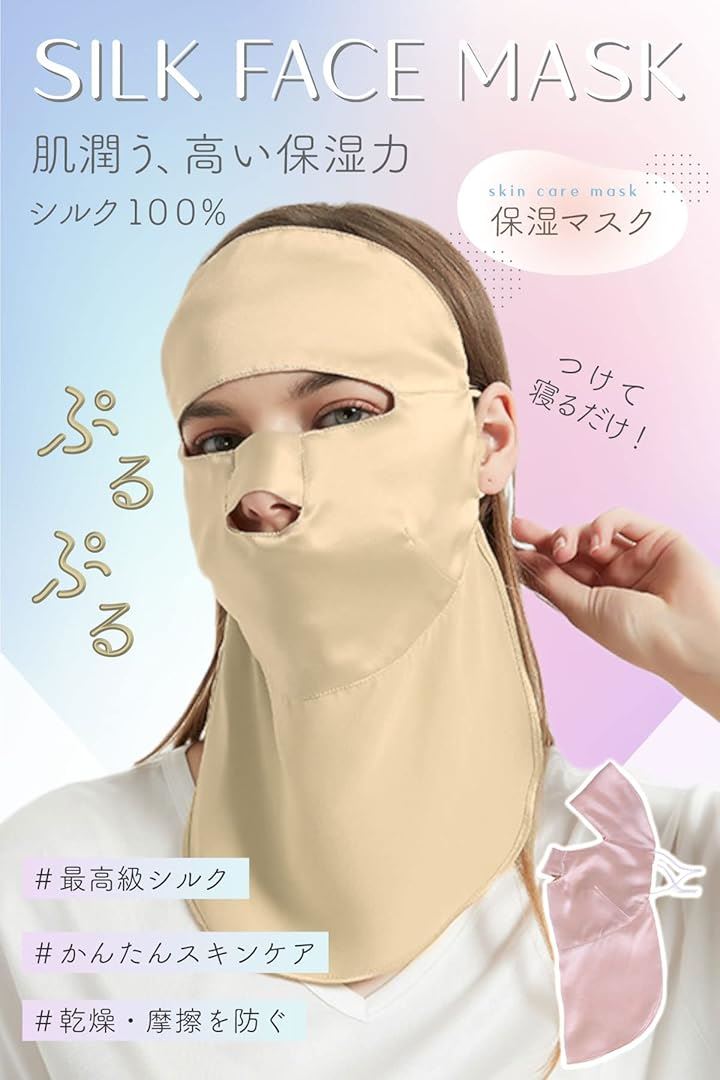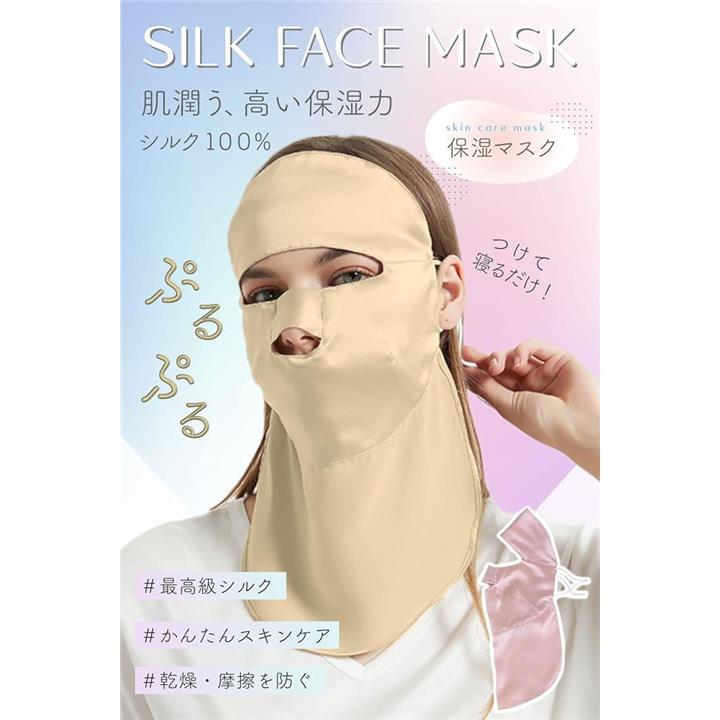 シルクマスク フェイスマスク 就寝用 美容 保湿 乾燥肌 敏感肌 100%天然 紫外線対策 パック 顔 寝る時