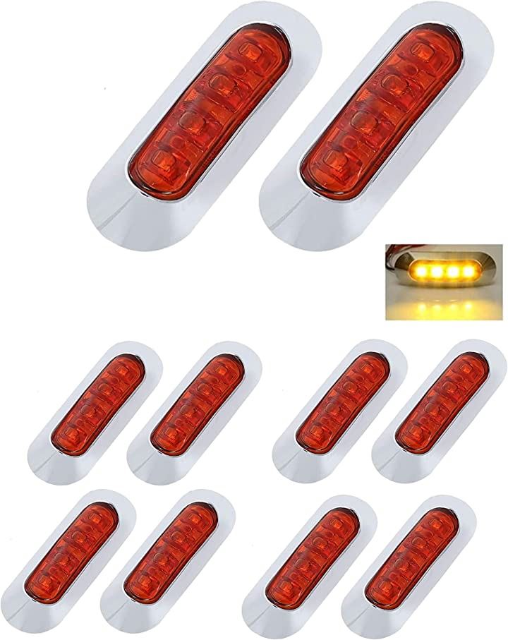 互換品LED 4連 マーカー ランプ 10個セット DC 12V 24V 汎用 サイドマーカー 車用 小型 車高灯 防水 クロムメッキ トラック クリア レンズ