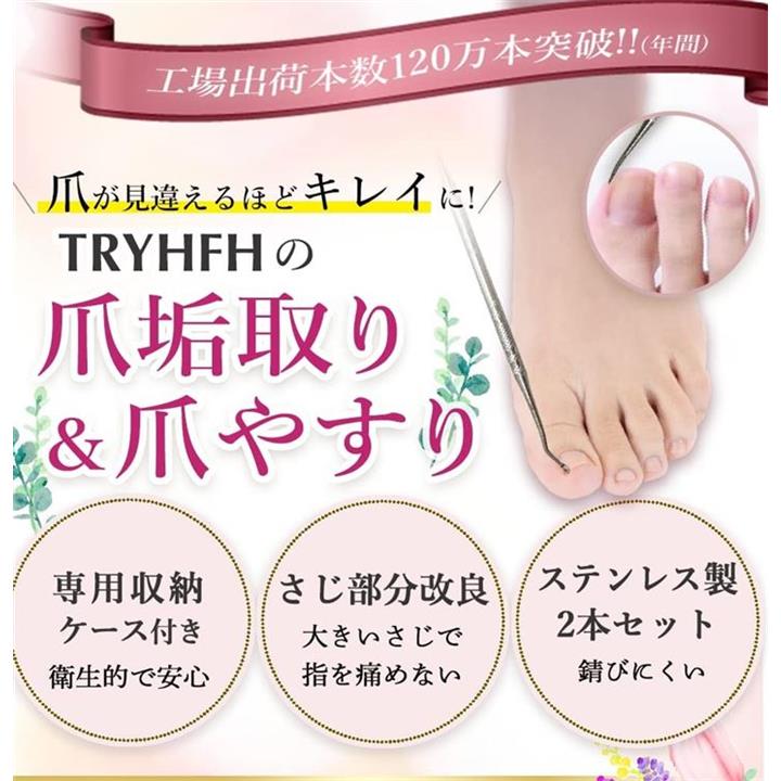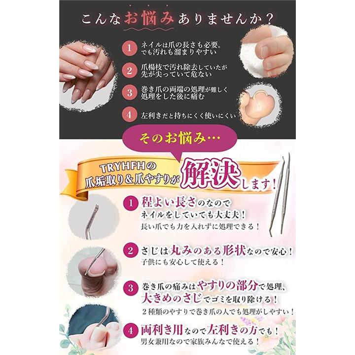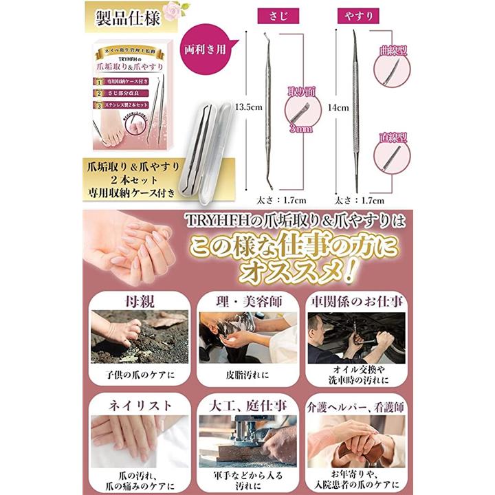爪垢取り 爪やすり 巻き爪 や 肥厚爪 足の臭い対策 ネイルケア子供から高齢者の手の爪 足の爪 爪のごみ 角質取りにも最適 左右両利き用 ステンレス製2本セット 専用ケース付 |