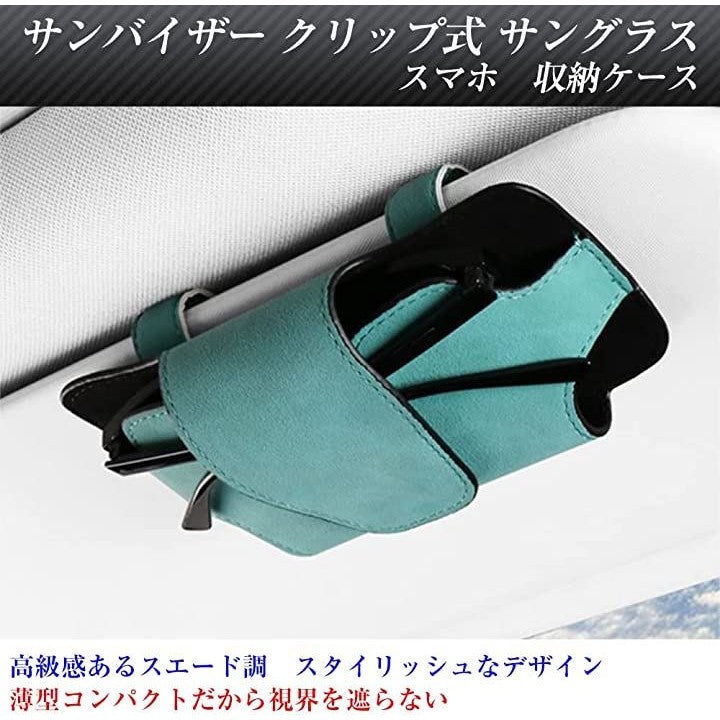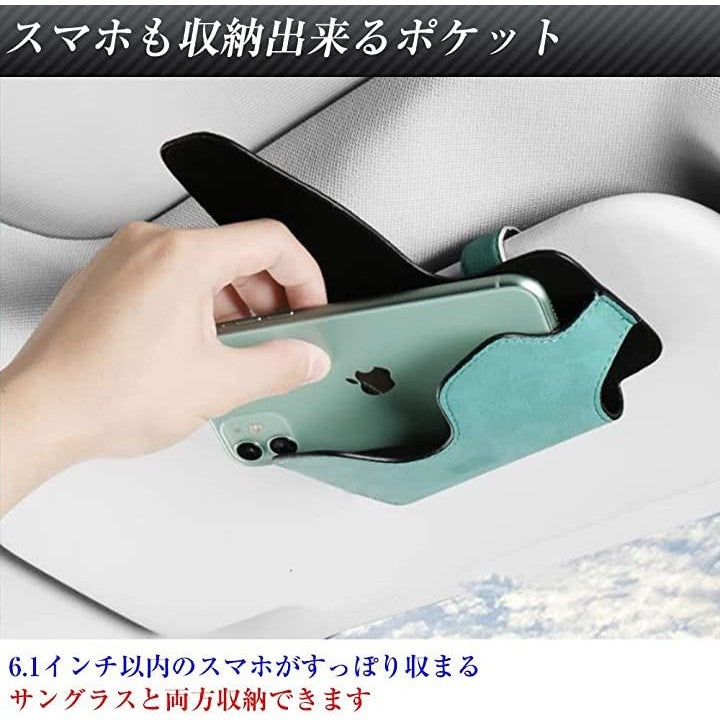 互換品サングラスホルダー 車 汎用 スエード マグネット開口 カーサンバイザー スマホ 収納ポケット