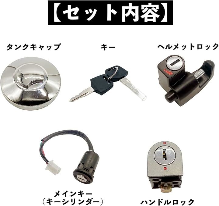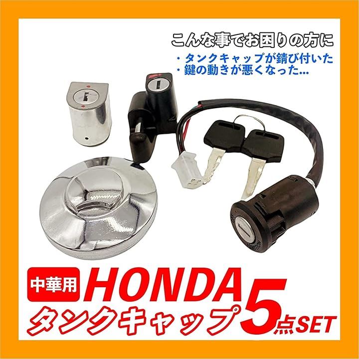 互換品 HONDA ホンダ ガソリン タンク タンクキャップ キー 5点 セット 中華 モンキー ゴリラ スーパーカブ50 C50 ハンドルロック ヘルメットホルダー