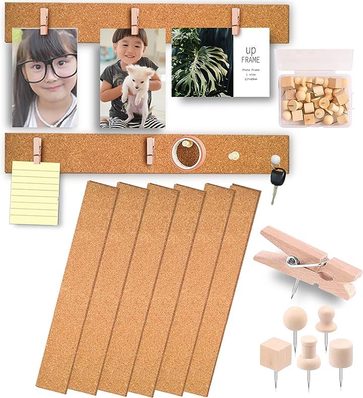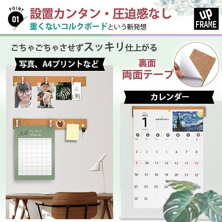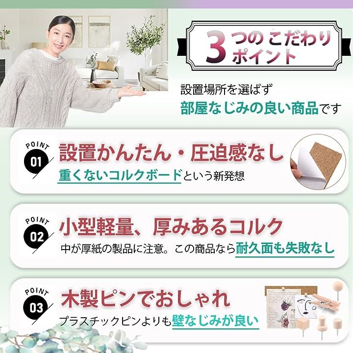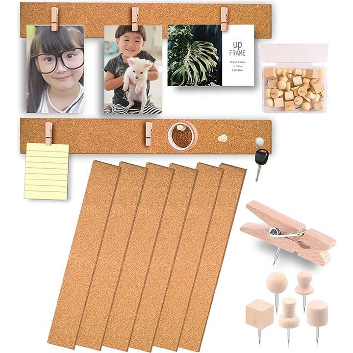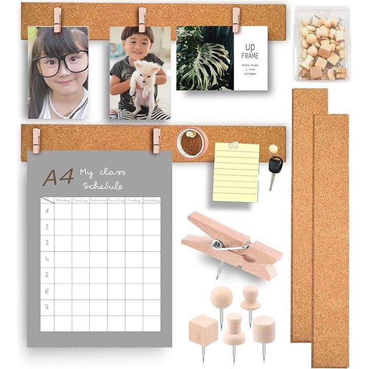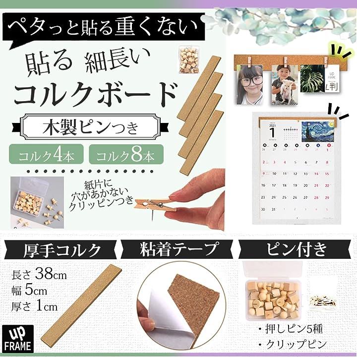 コルクボード スリム 木製ピン付き 貼るタイプ 枠なし 粘着 壁掛け 画鋲 クリップピンセット