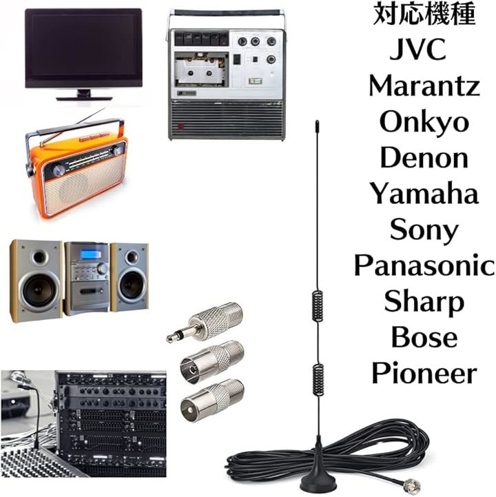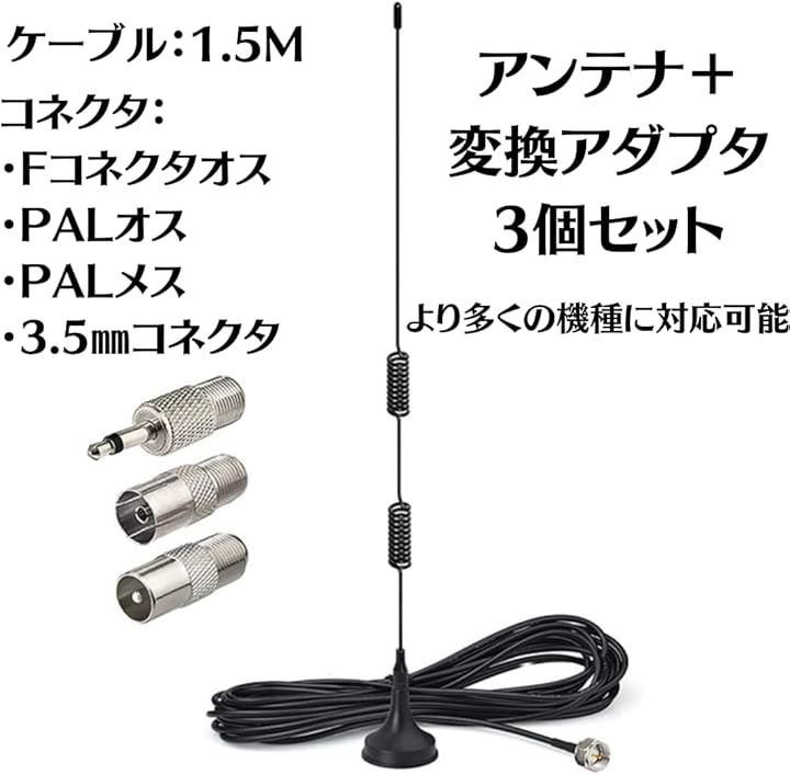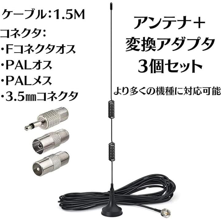 関東アンテナ研究所FMアンテナ 室内アンテナ ラジオアンテナ 3種変換アダプター付 高感度 マグネット式