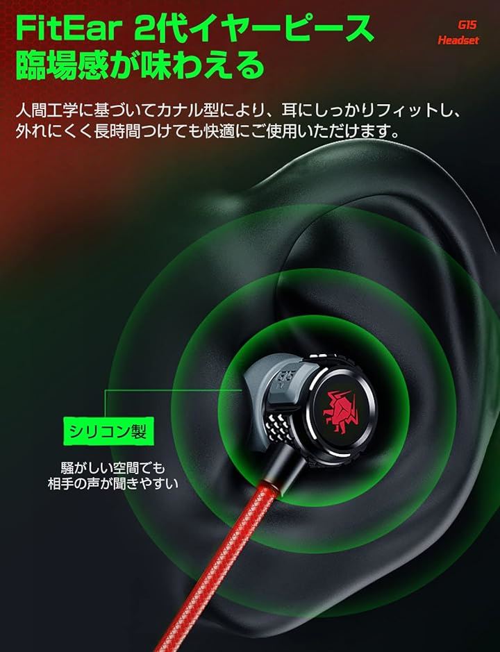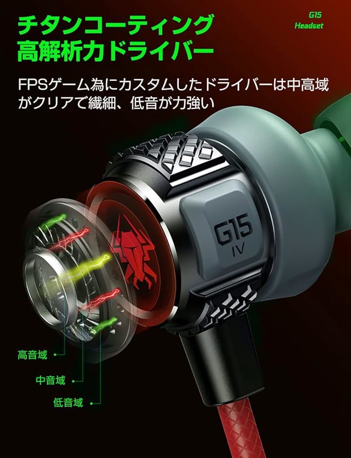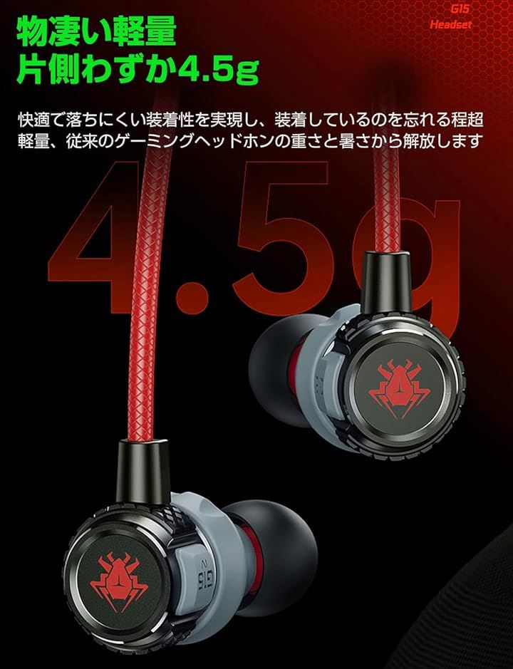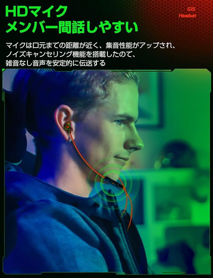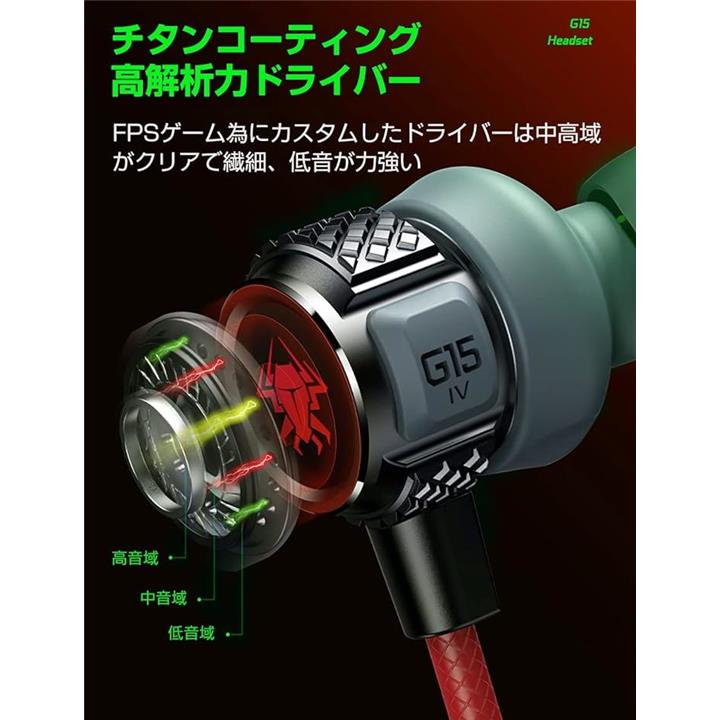互換品G15-IV ゲーミングイヤホン マイク付き 3.5mm ゲーム用