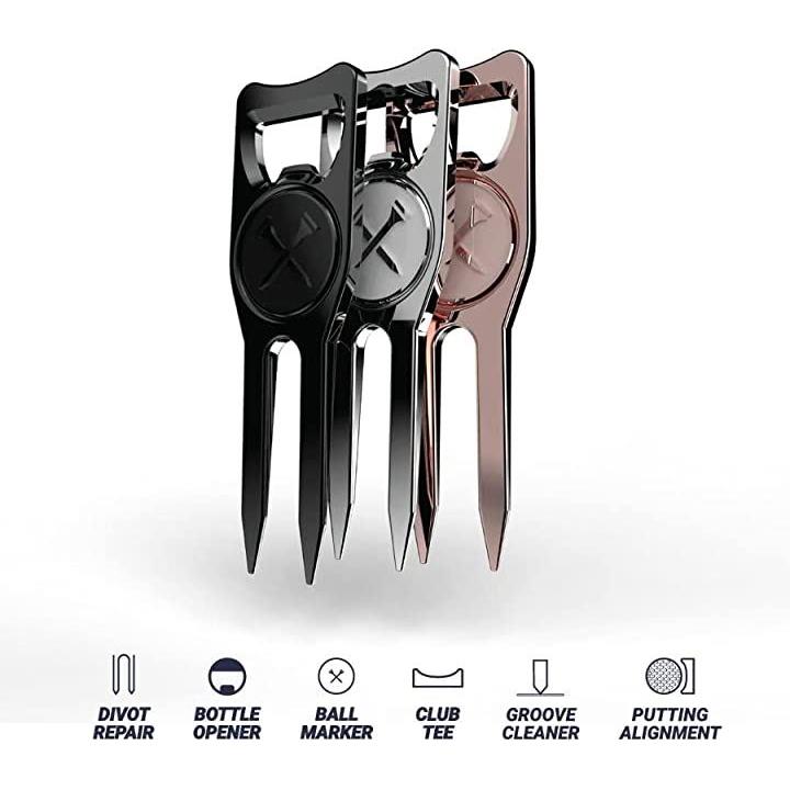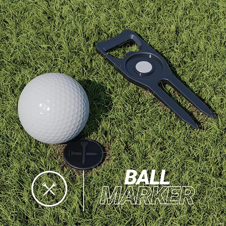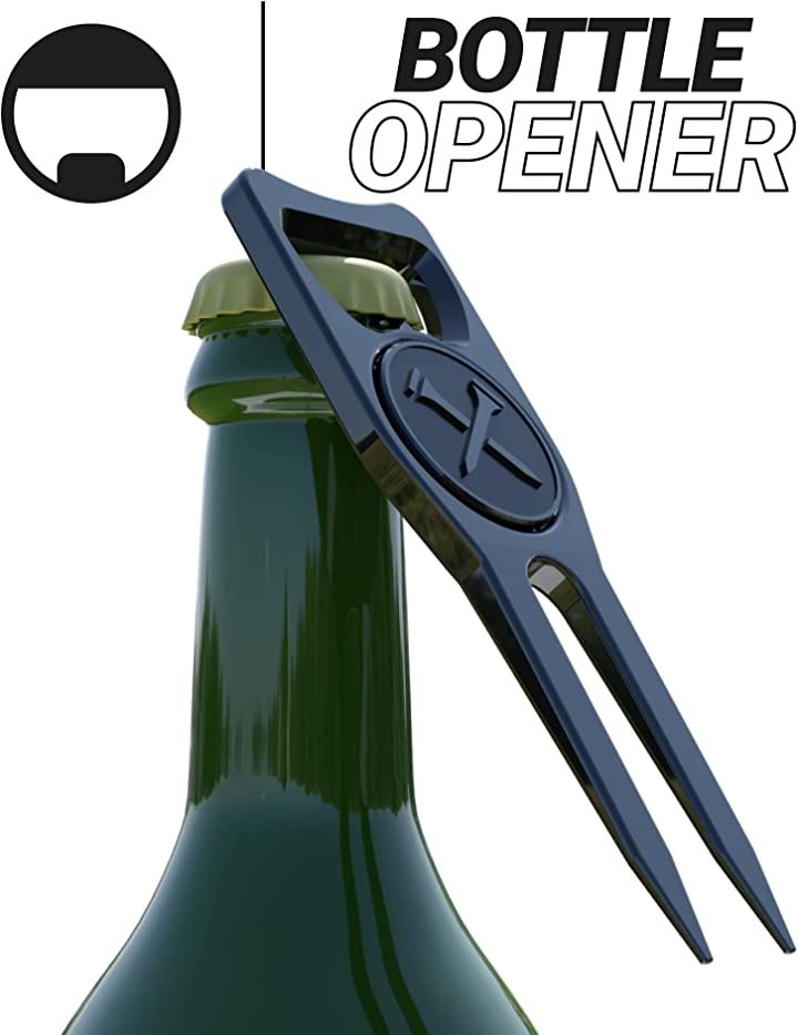 ゴルフ グリーンフォーク ディボット ツール マーカー 修復 栓抜き 多機能 ブルー ティーズ