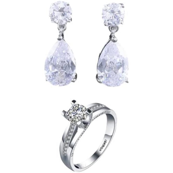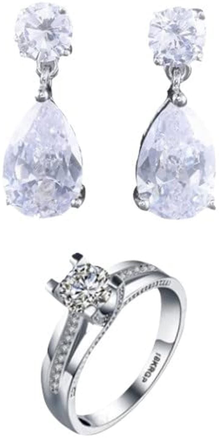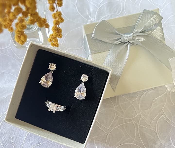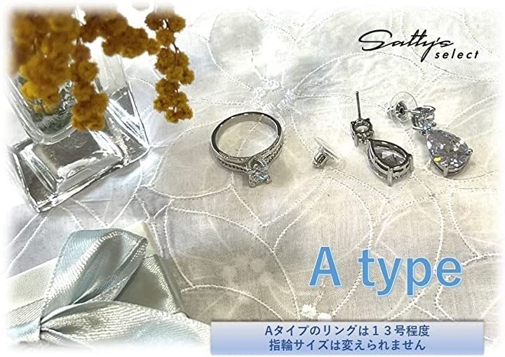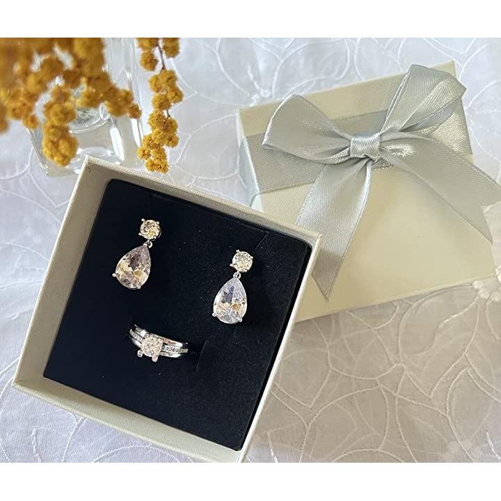Satty’s selectパーティジュエリーセット ピアスとリング ギフト箱入り ブライダル 結婚式 パーティー 二次会 ラインストーン シルバー set