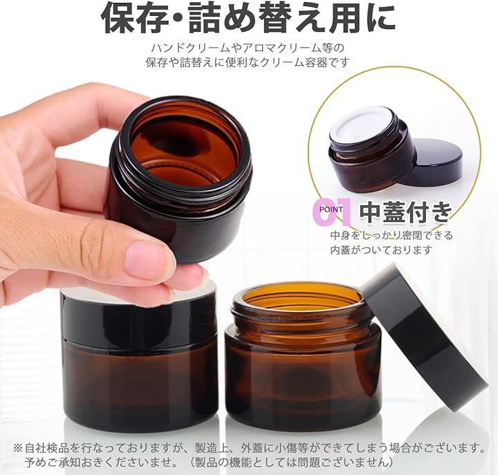クリーム容器 遮光瓶 ガラス製 ジャー 詰め替え 保存用 中蓋付き