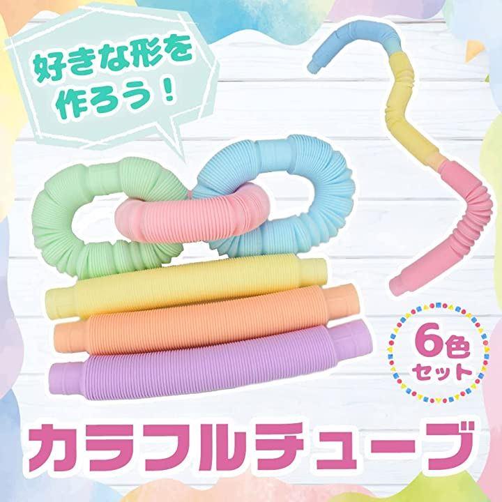 カラフルポップチューブ おもちゃ パイプ ストレス発散 曲げて遊ぶ 6本セット