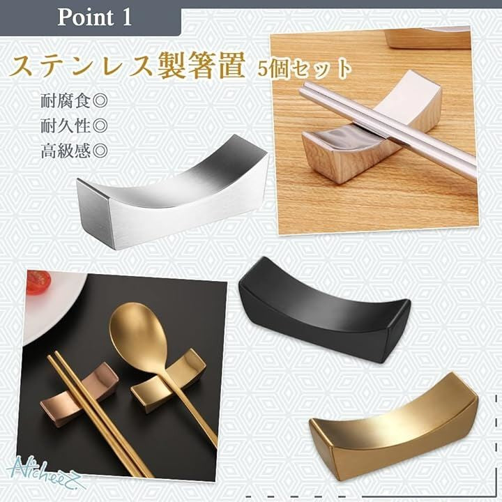 箸置き ステンレス製 シンプル デザイン カトラリーレスト 5個セット