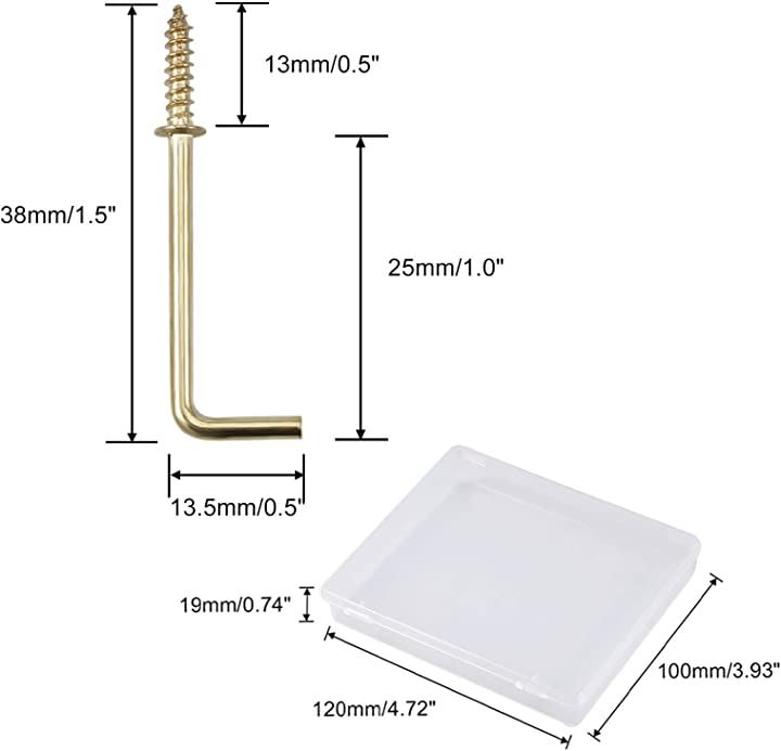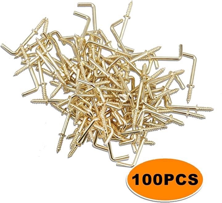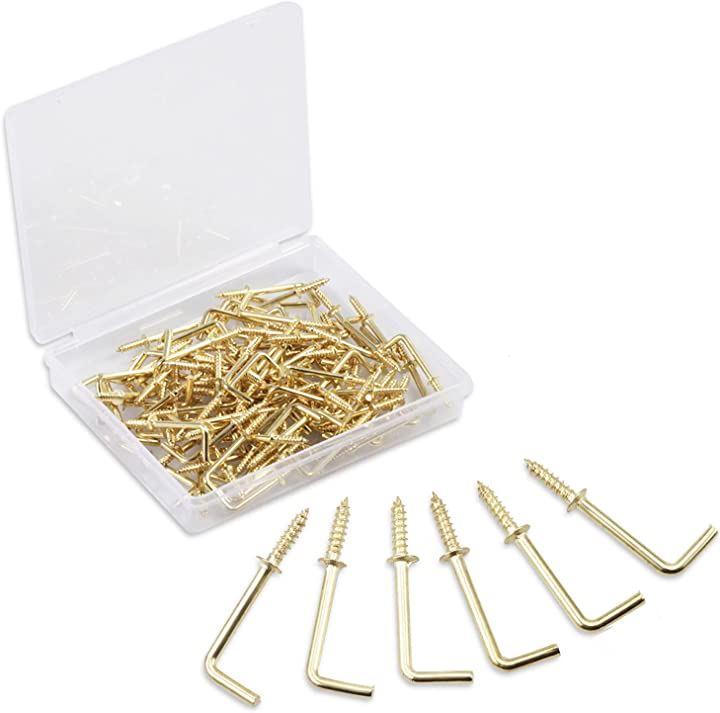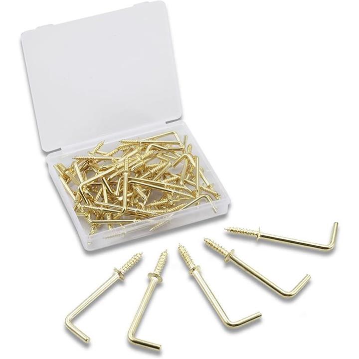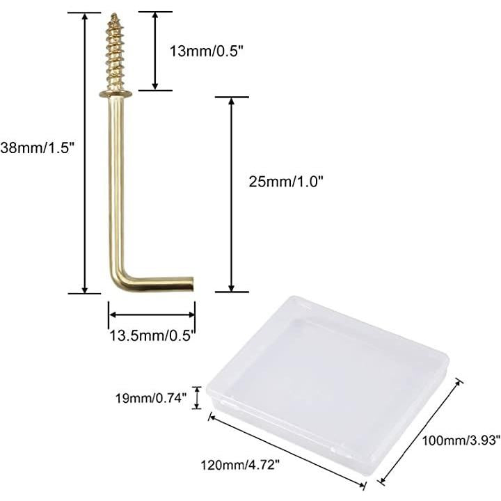SPEEDWOX 100PCS直角ネジフック1インチ ねじ込み式スクエアベンドフック 収納ボックス付き L字型ネイルフックファスナーアクセサリー