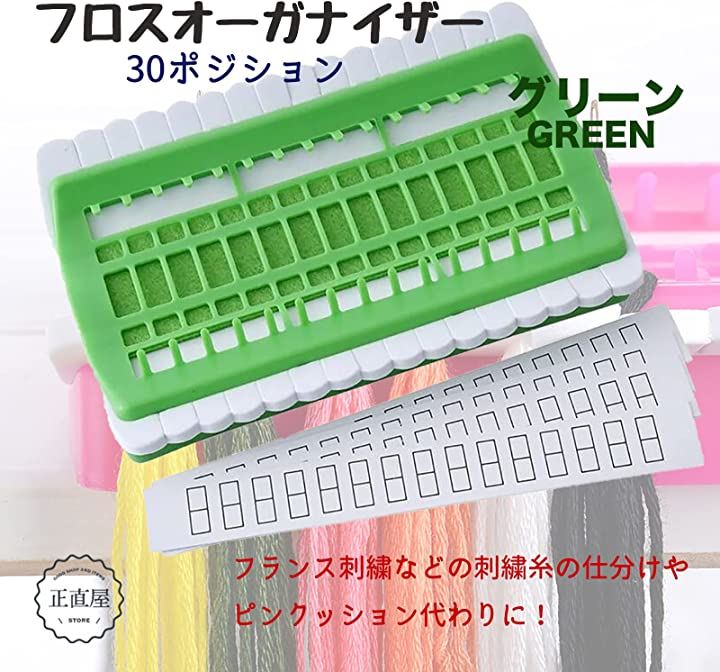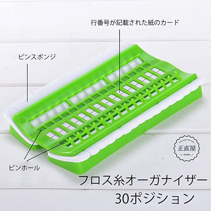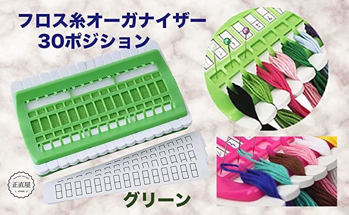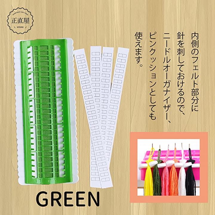 刺繍 フロス糸オーガナイザー 30ポジション ミシン針 クロスステッチ プロジェクト専用ツール グリーン