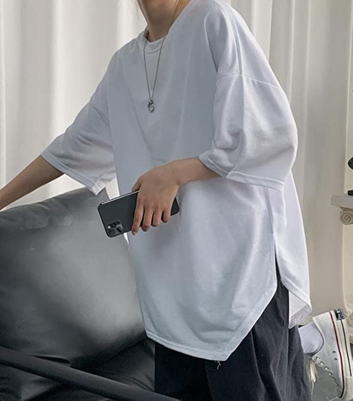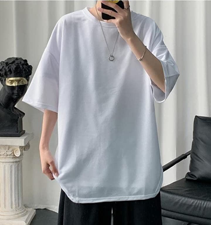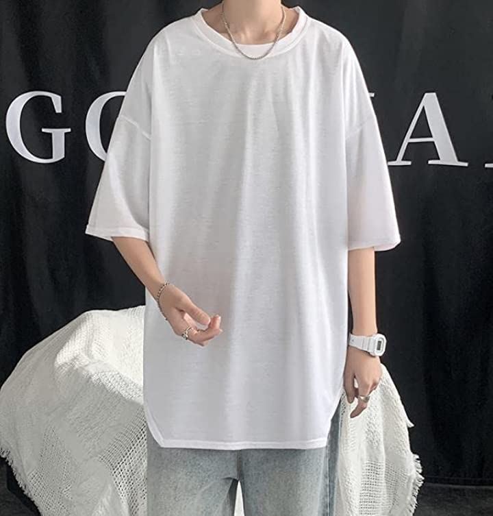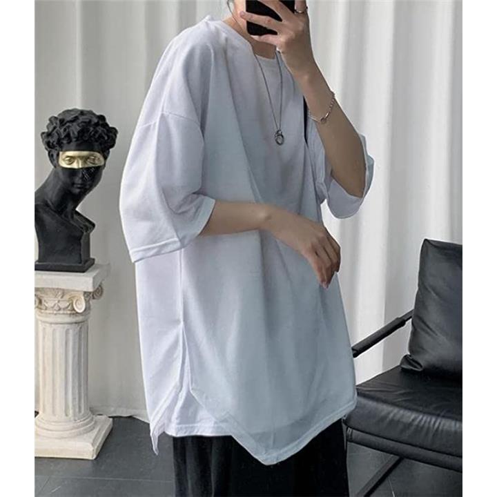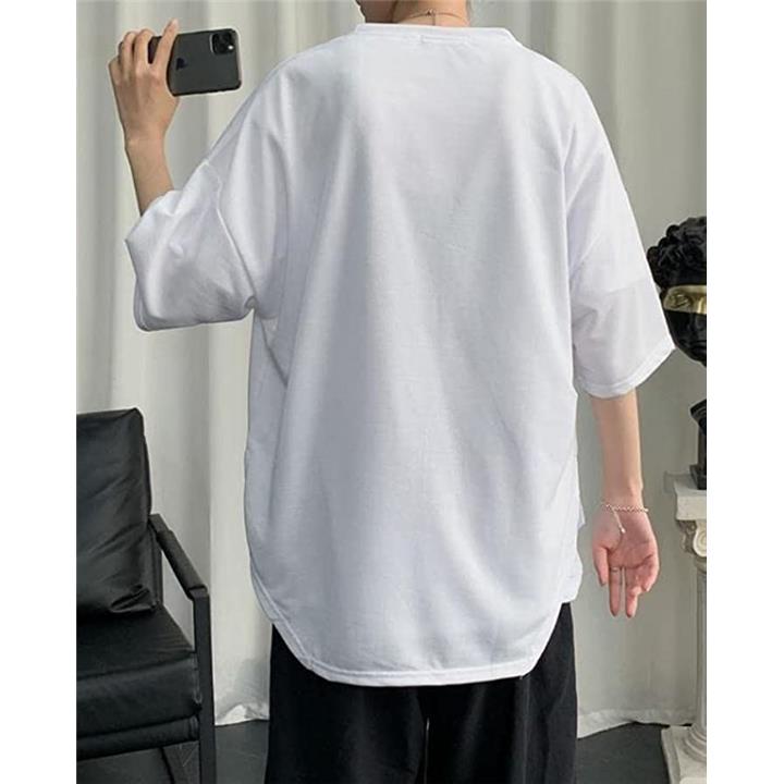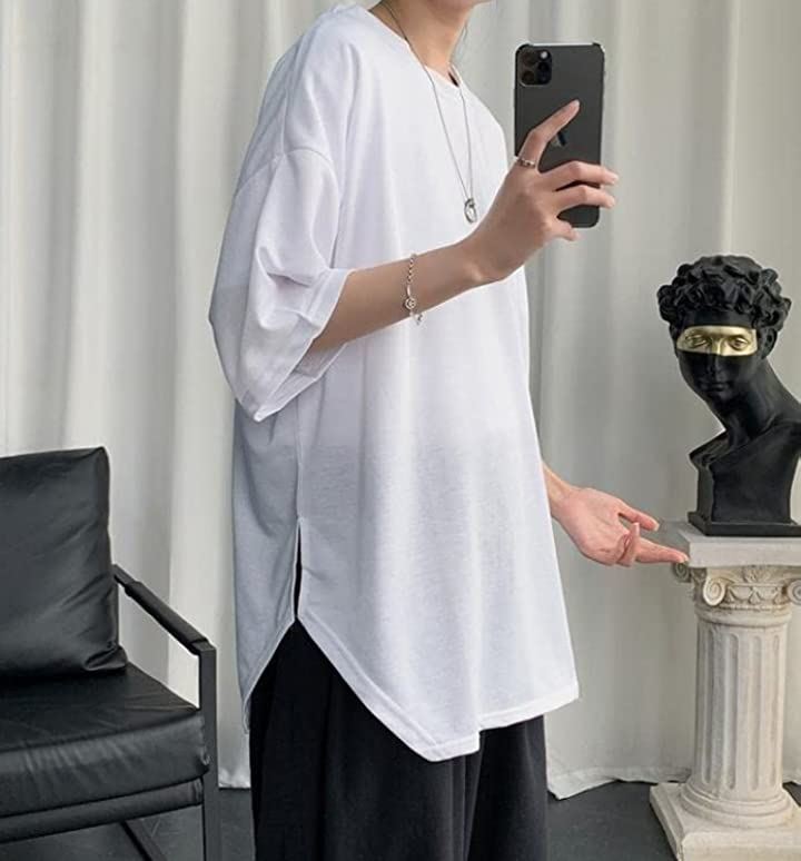[エンプティオ] 半袖 シャツ ビッグシルエット オーバーサイズ 丈長 メンズ アウトドア ロングスリーブ 襟なし ストリート系 丸首(3XL) ホワイト |