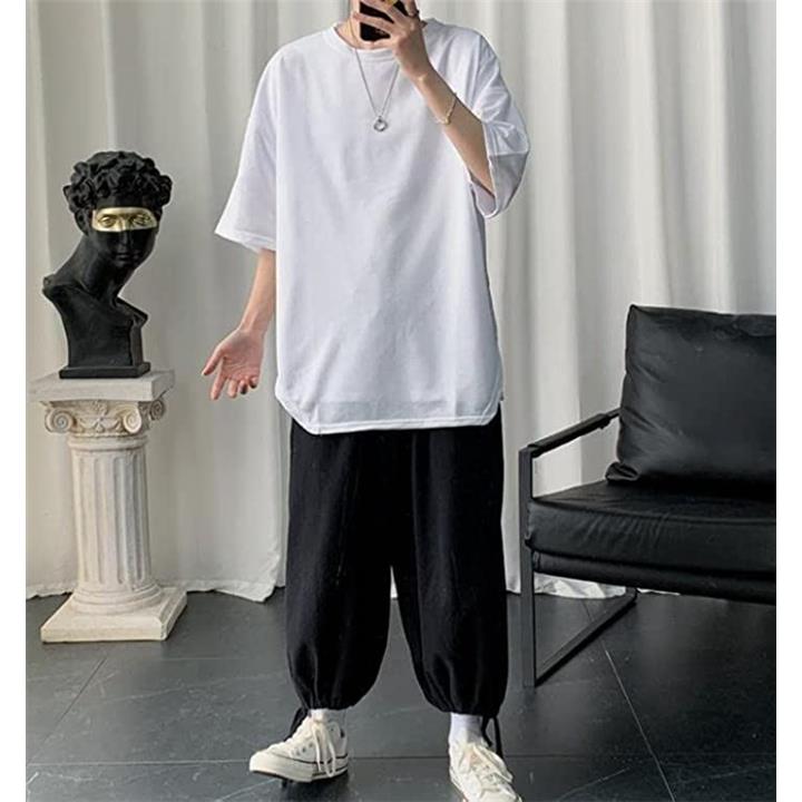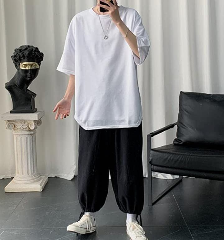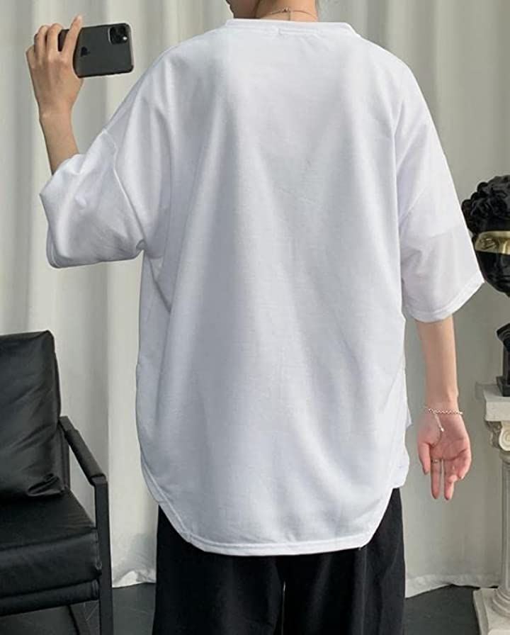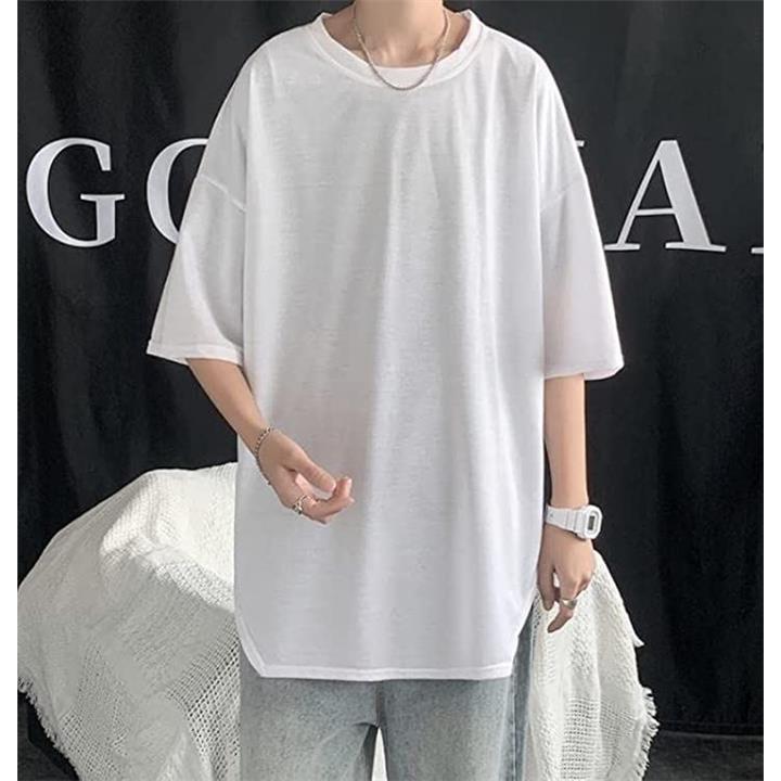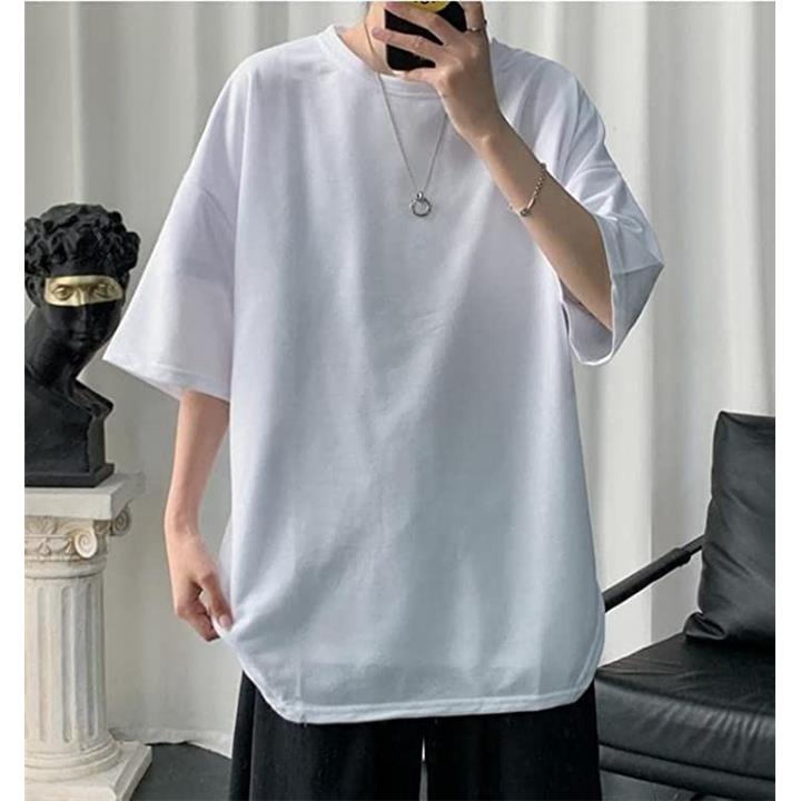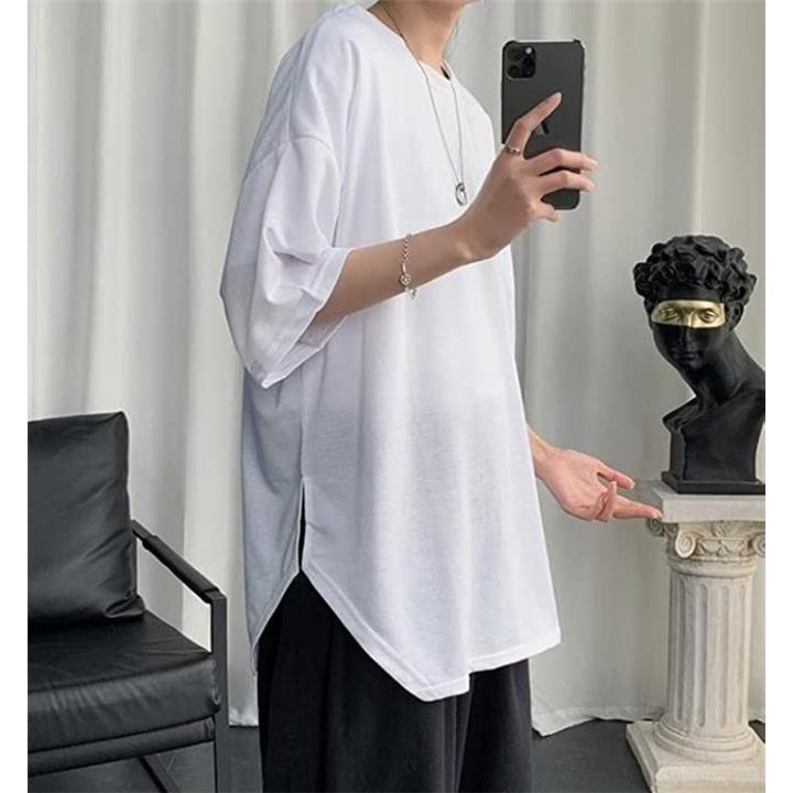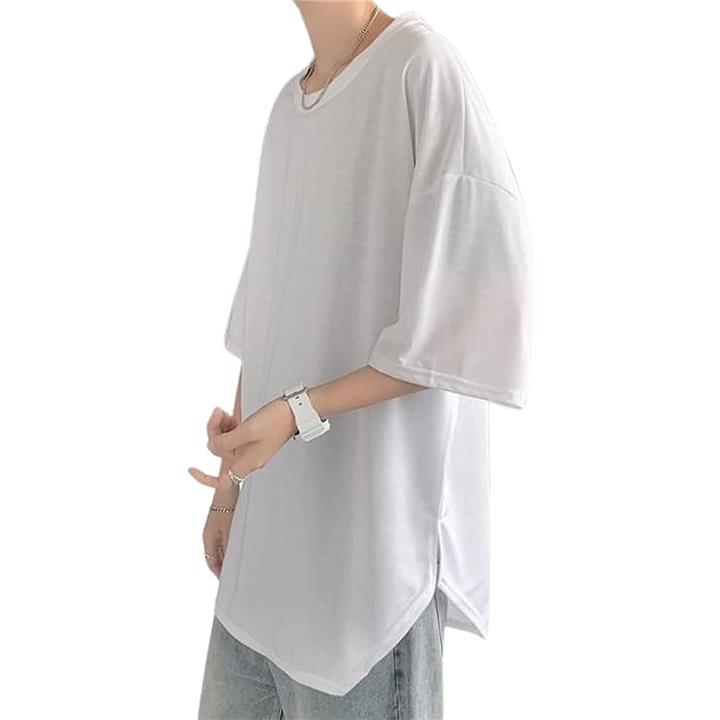 [エンプティオ] 半袖 シャツ ビッグシルエット オーバーサイズ 丈長 メンズ アウトドア ロングスリーブ 襟なし ストリート系 丸首(3XL) ホワイト |