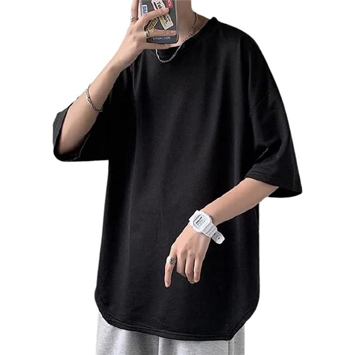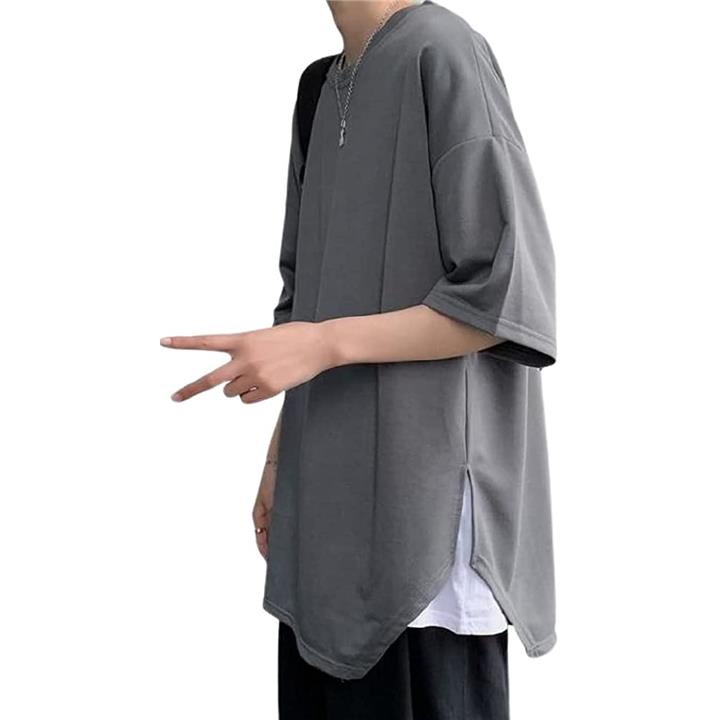 [エンプティオ] 半袖 シャツ ビッグシルエット オーバーサイズ 丈長 メンズ アウトドア ロングスリーブ 襟なし ストリート系 丸首(XL) グレー |