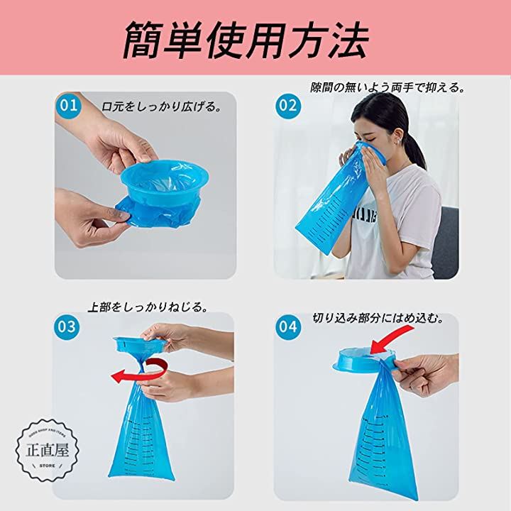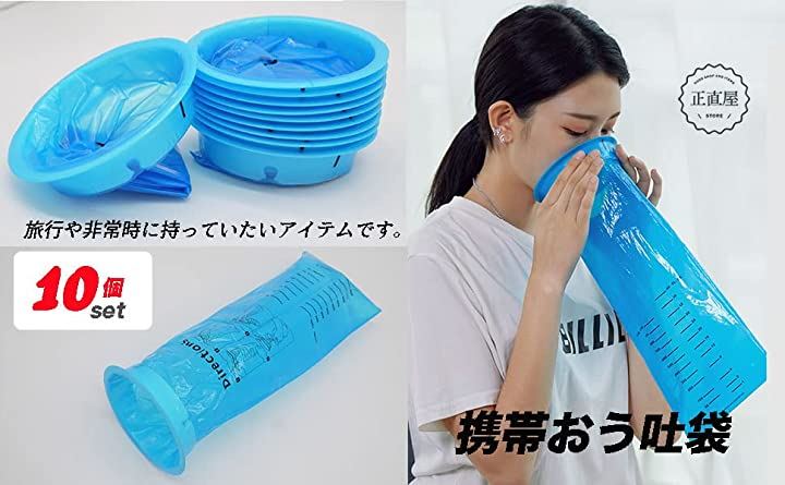 携帯 おう吐袋 嘔吐バッグ 尿袋 使い捨て 防災 つわり 乗り物酔い 汚物処理 1 000ml ブルー 10個セット