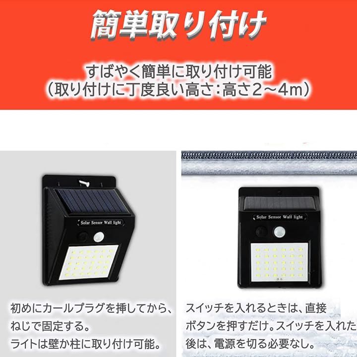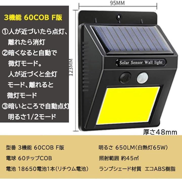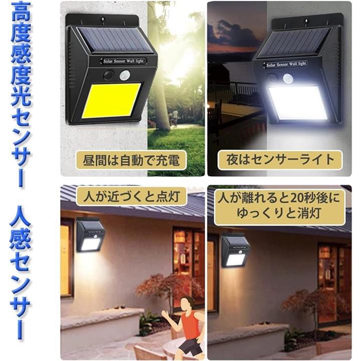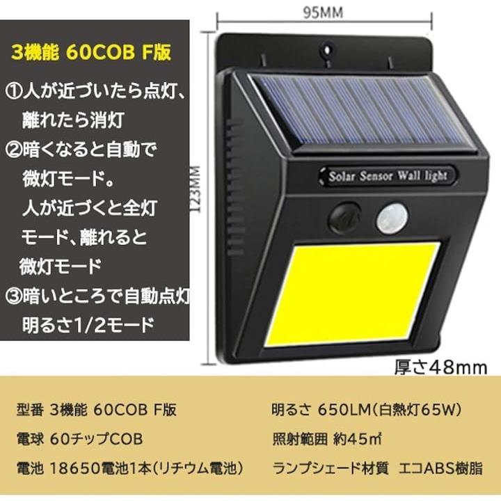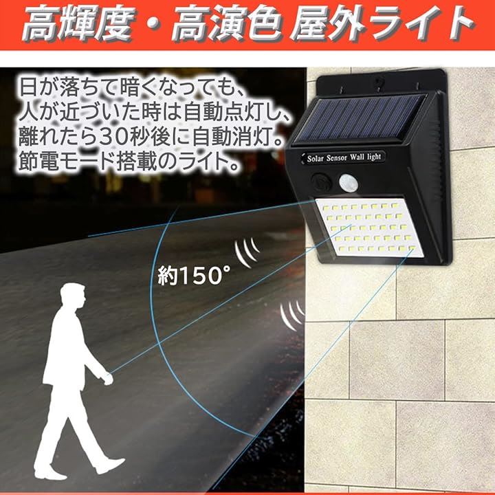 センサーライト 屋外 ソーラーライト 人感センサーライト 60LED IP6防水 とにかく明るい ガーデンライト 防犯ライト センサー照明