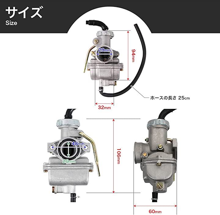 互換品アルミ製 PC20 PZ20 キャブレターセット VM22 パワーフィルター 燃料フィルター 4ミニ ホンダ モンキー ゴリラ エイプ カブ ジャズ DAX ATV 4st 等