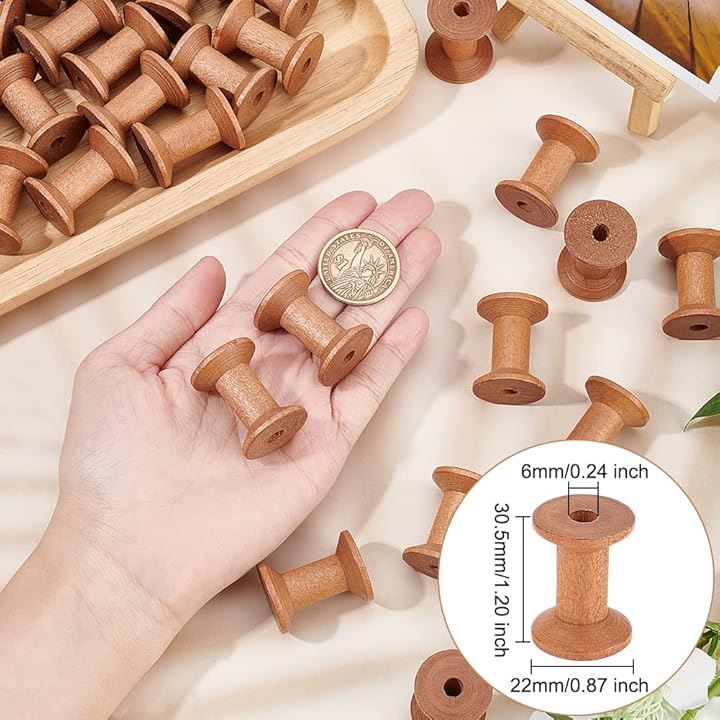 50個 木製ボビン ボビンスプール 直径約22mm 縫製ボビン 空スプール 刺繍用 ミシン用 織りボビン 巻き取り用 糸スプール DIY 手作り
