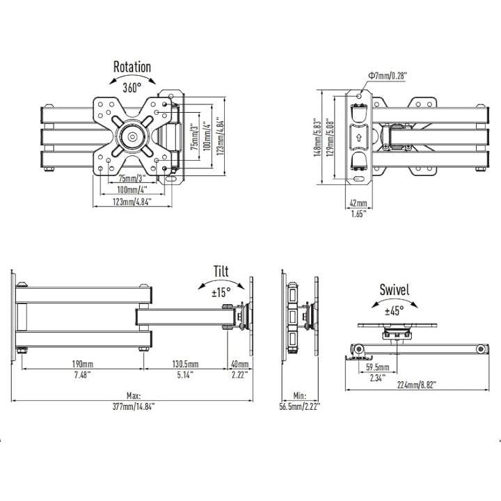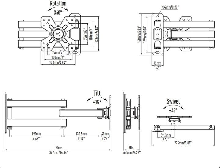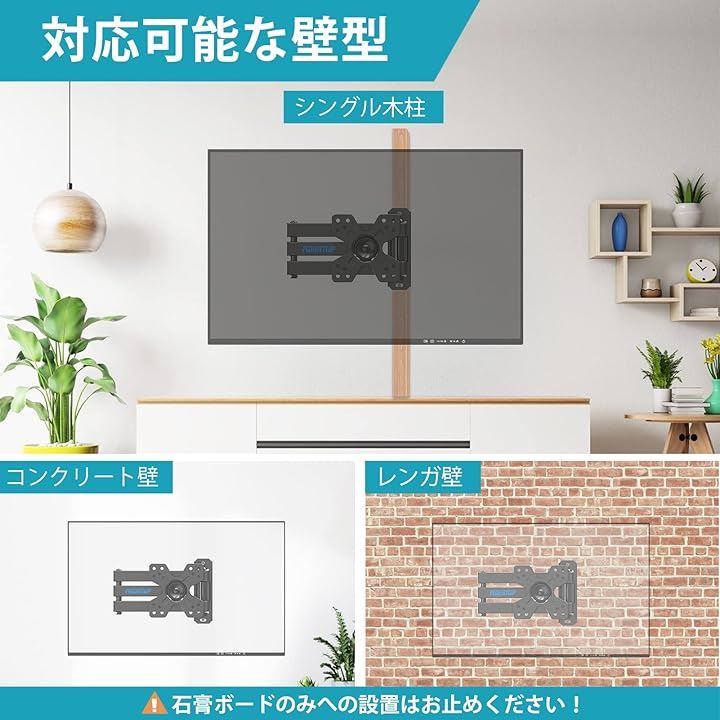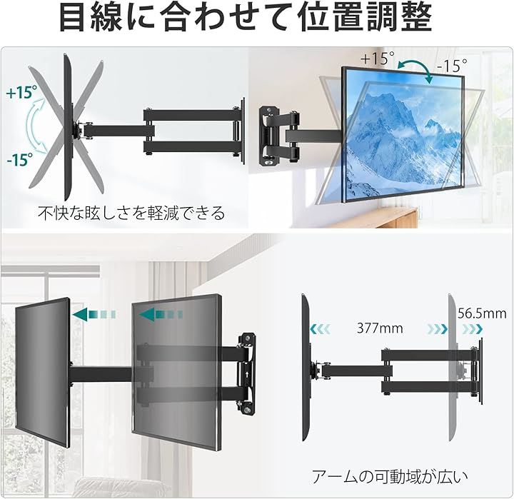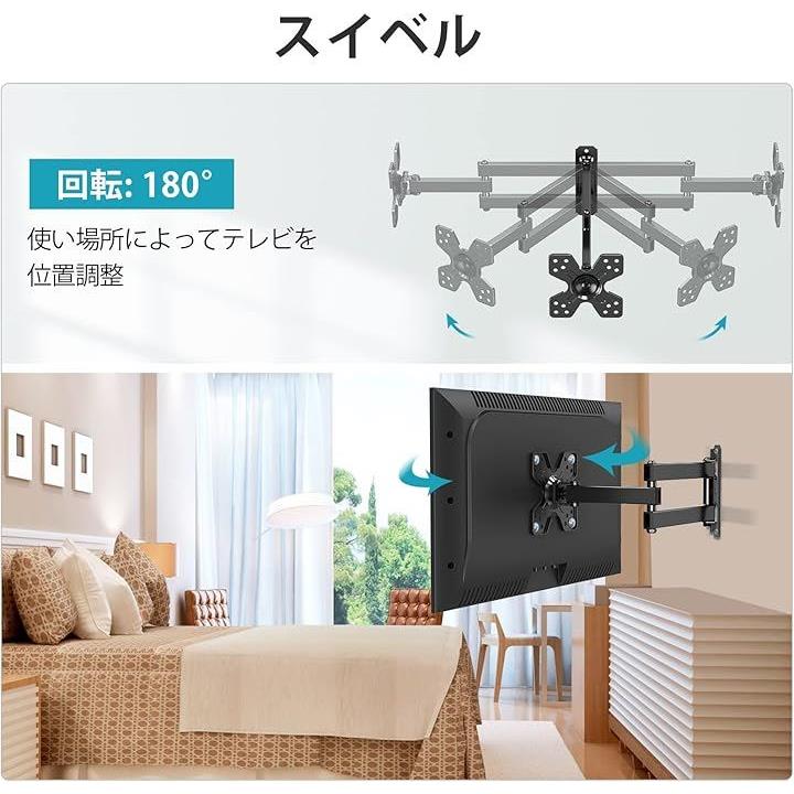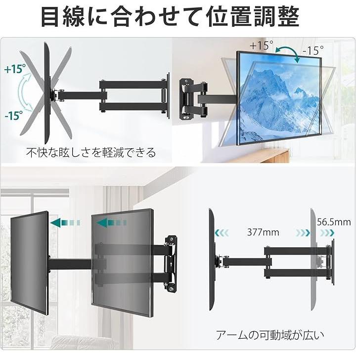 テレビ壁掛け金具 軽量 10~26インチ対応 耐荷重15kg 小型 モニターアーム 回転式 左右移動式 上下角度調整 液晶ディスプレイアーム