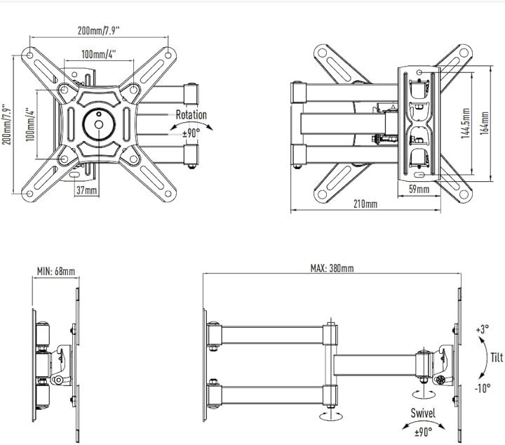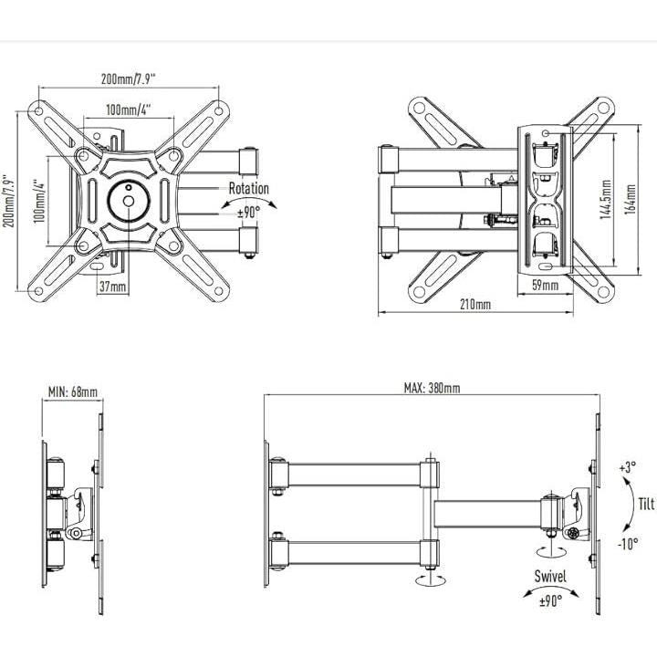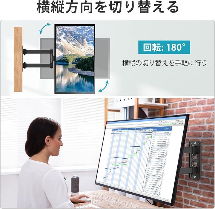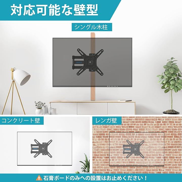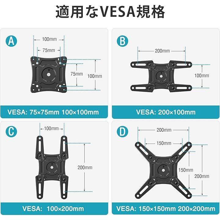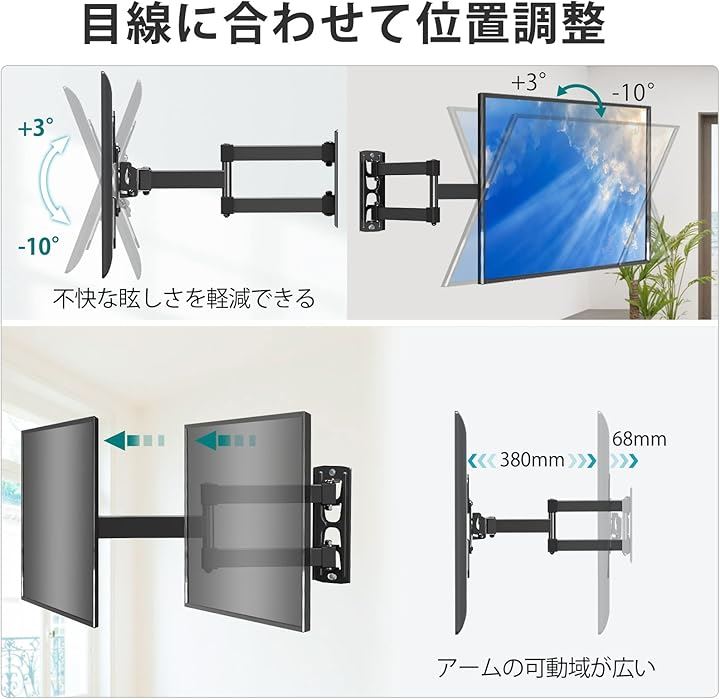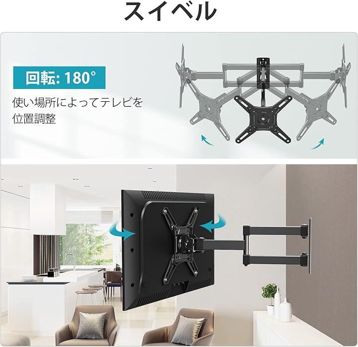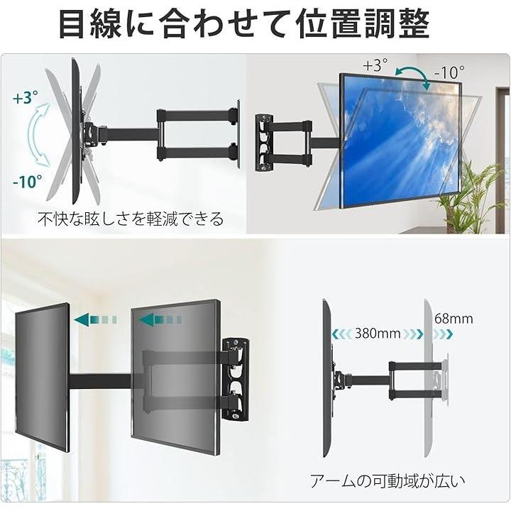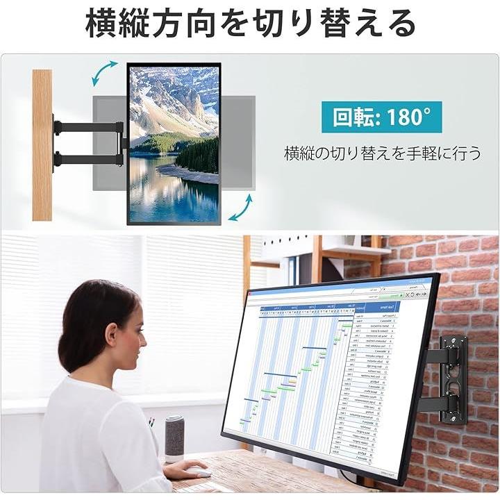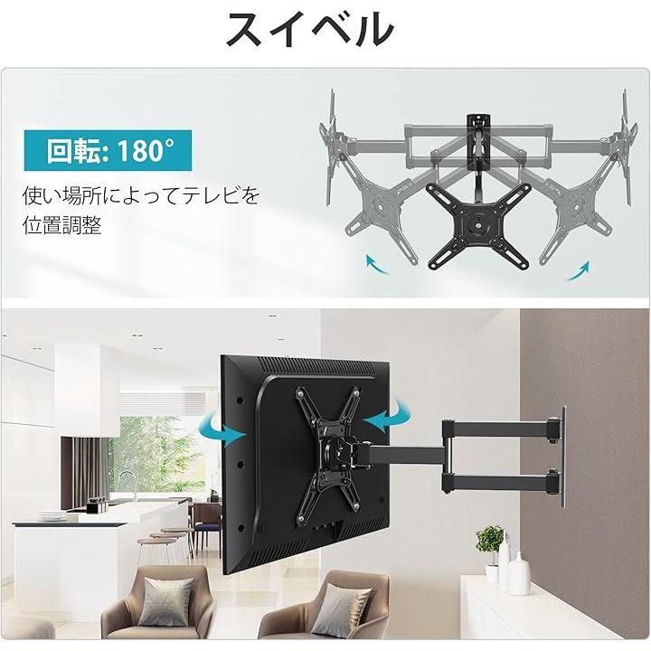 テレビ壁掛け金具 回転式 モニターアーム 軽量 10~43インチ対応 耐荷重13kg 中小型 左右移動式 多角度調整 VESA200x200mm