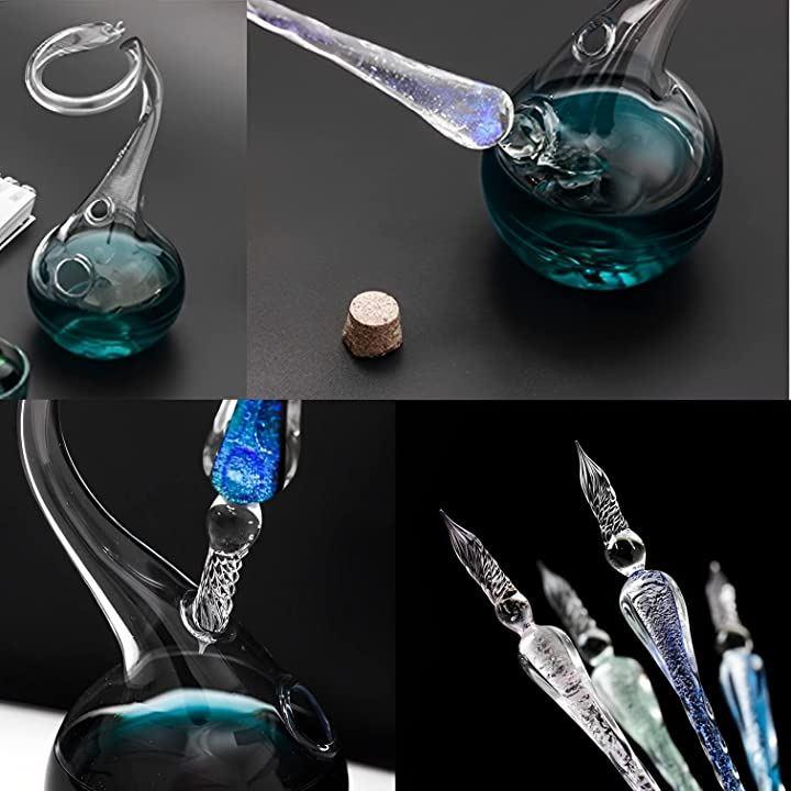 ガラス瓶 ガラスペン 署名 アート 絵画 装飾 透明 インクボトル