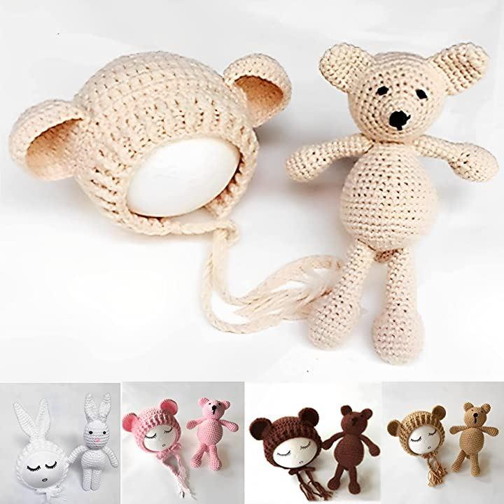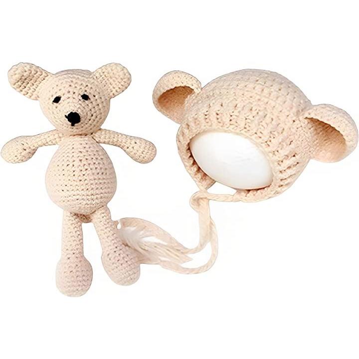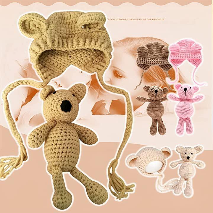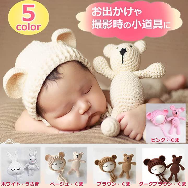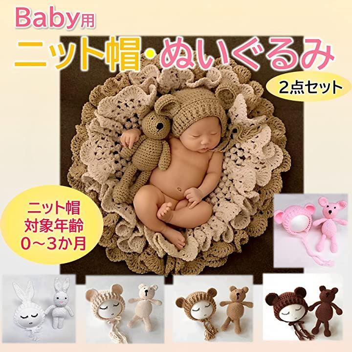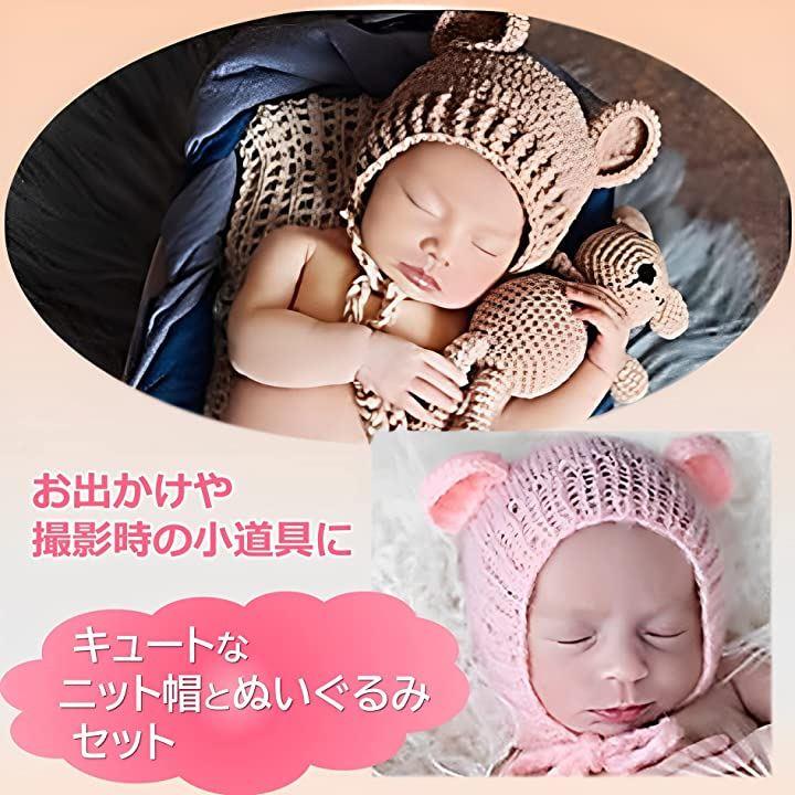 赤ちゃん ニット帽 ぬいぐるみ 2点セット 0~3か月用ベビー 写真 服撮影 帽子 小道具 ニューボーン