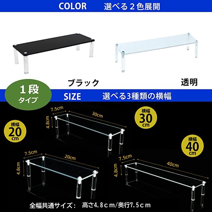 フィギュア ディスプレイ スタンド ステージ アクリル製 ひな壇 コスメ 時計 コレクション(ブラック:1段 幅30cm) |