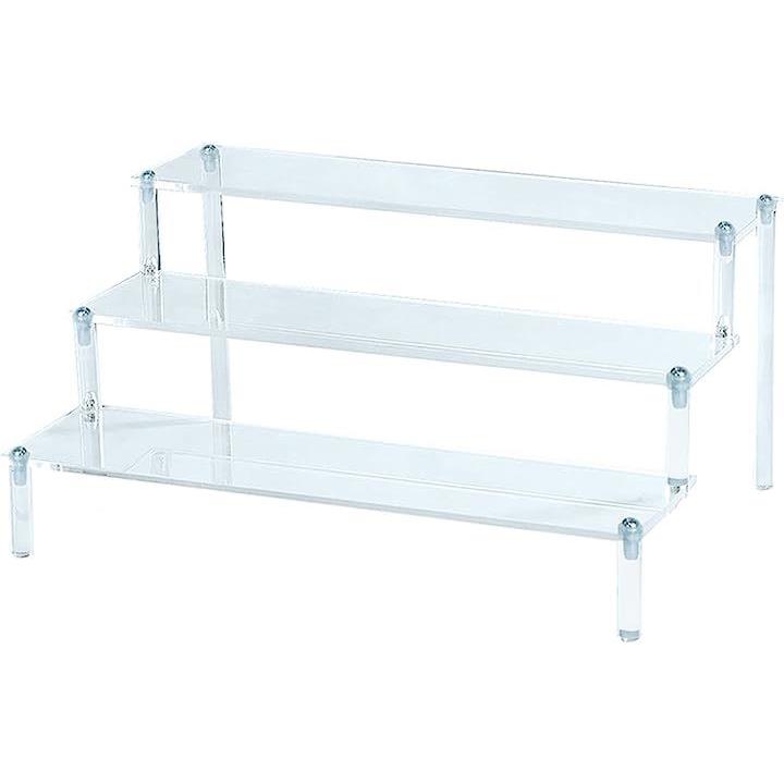 フィギュア ディスプレイ スタンド ステージ アクリル製 ひな壇 コスメ 時計 コレクション 展示 化粧品 (3段 幅20cm, クリア) |