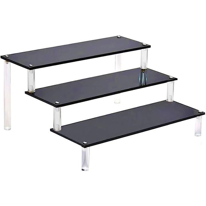 フィギュア ディスプレイ スタンド ステージ アクリル製 ひな壇 コスメ 時計 コレクション(ブラック:3段 40幅cm) |
