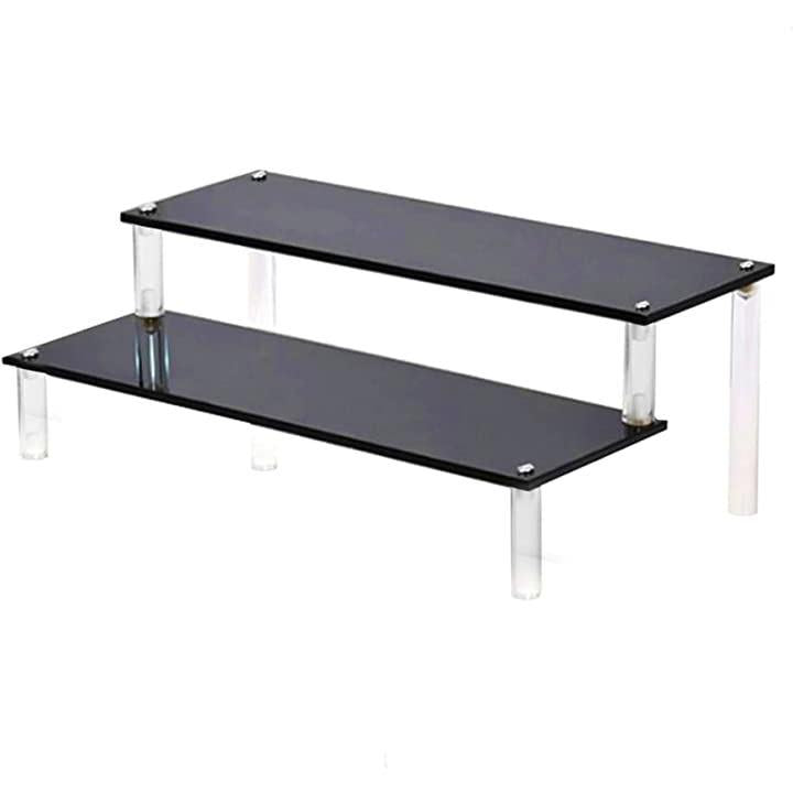 フィギュア ディスプレイ スタンド ステージ アクリル製 ひな壇 コスメ 時計 コレクション (ブラック 2段 幅20cm) |