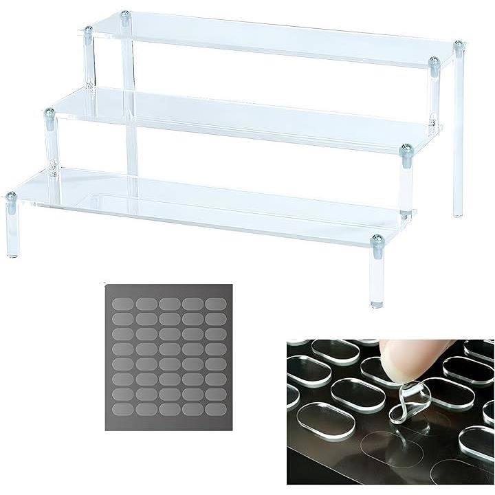 フィギュア ディスプレイ スタンド ステージ アクリル製 ひな壇 コスメ 時計 コレクション(クリア:3段 幅30cm) |