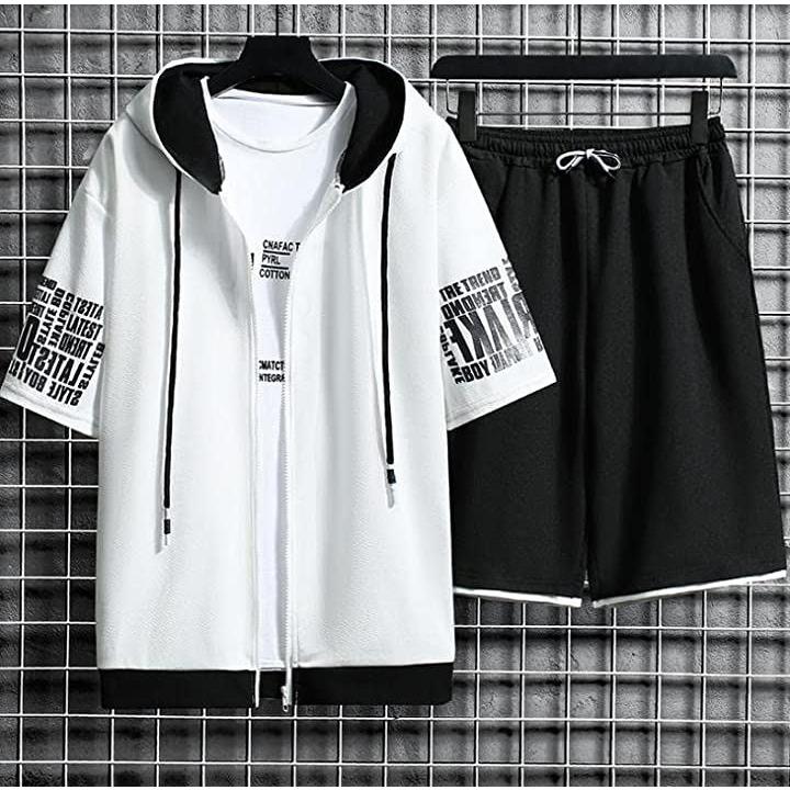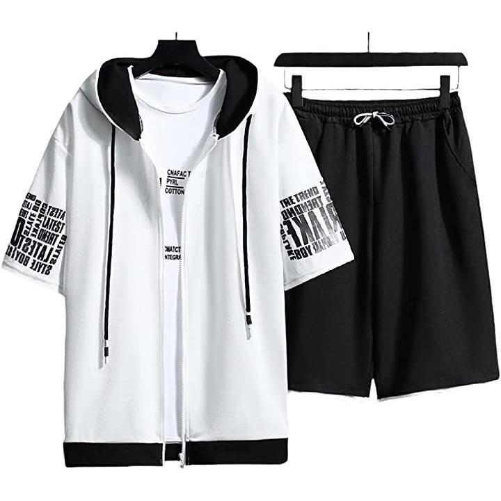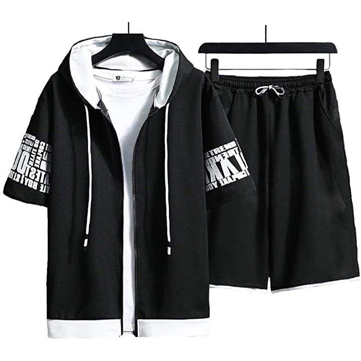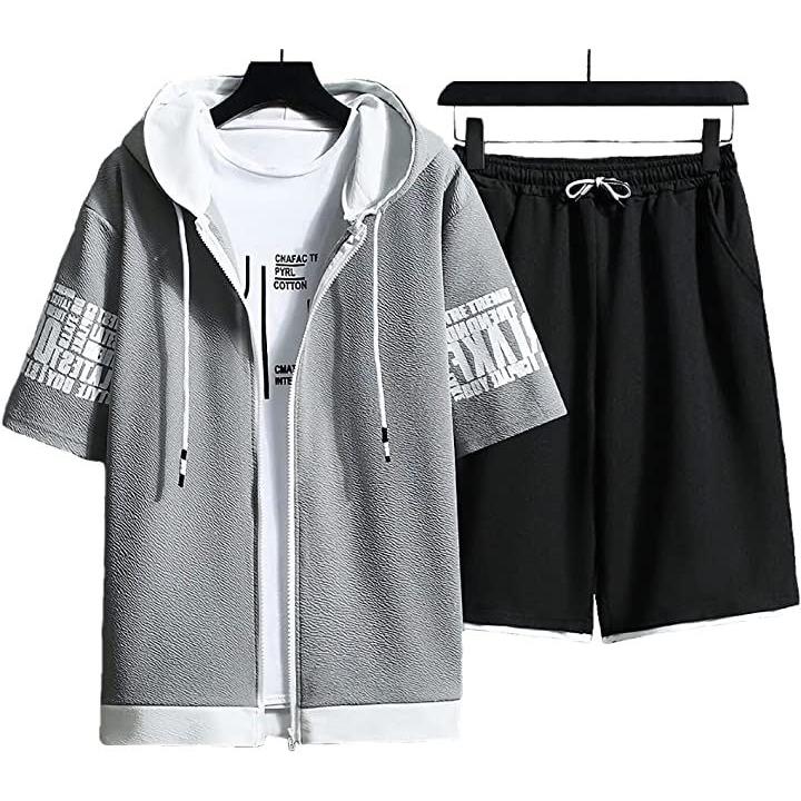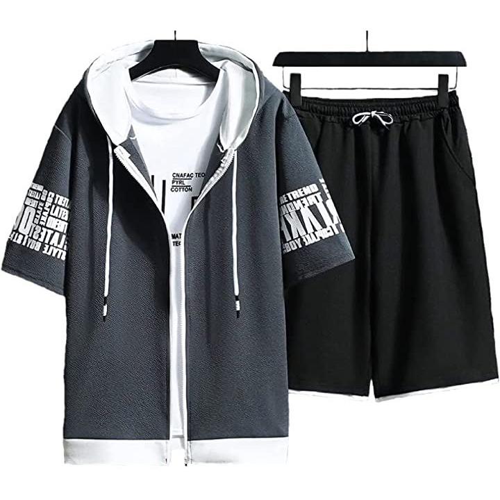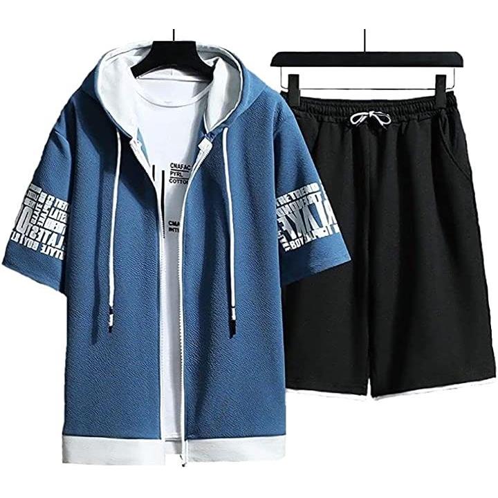 ストリート フルジップ 半袖 パーカー ハーフパンツ お洒落 上下セット メンズ |