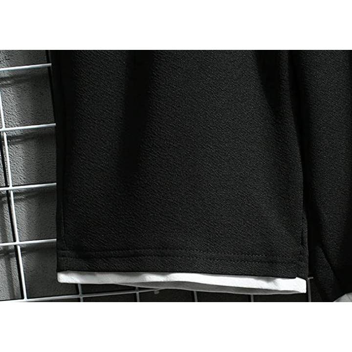 [エンプティオ] ストリート 半袖 パーカー ハーフパンツ お洒落 上下セット メンズ セットアップ カッコいい ジャージ スポーツ スウェット ショートパンツ アウター ポケット付き (L) ブラック |
