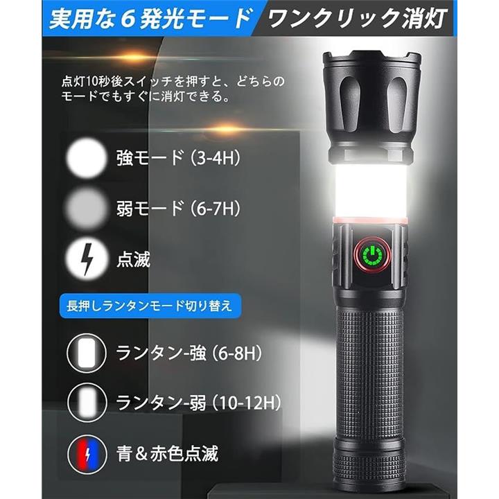 互換品充電式 LED ハンディライト USB 充電式 P50チップ 懐中電灯ランタン2IN1充電ledライト 高輝度 6モード マグネット 夜釣り 停電 防災 キャンプ アウトドア |