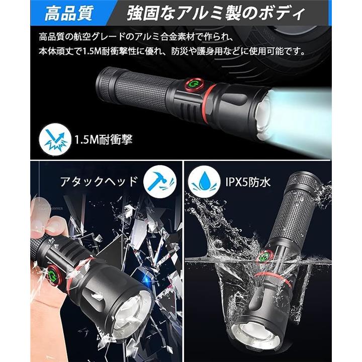 led懐中電灯が頑丈な航空機用アルミニウム合金を採用され、本体は頑丈で耐衝撃性に優れ、ライトの内部はダメージレス構造で、高さ1.5mから落下しても問題がない。