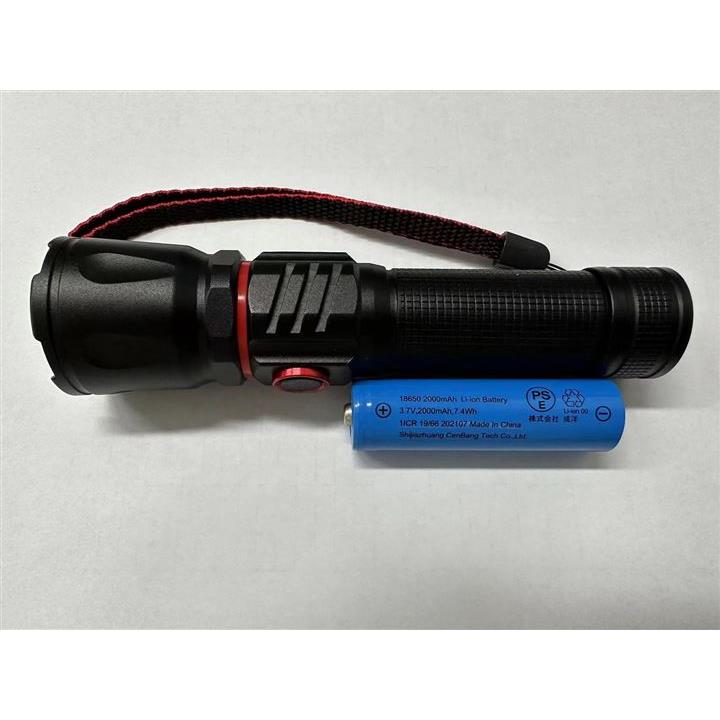 LED懐中電灯には大容量充電池を付属し、高輝度モードを使用した場合でも長時間点灯が可能です。