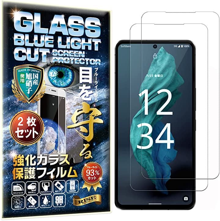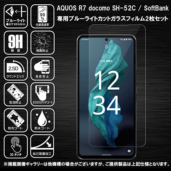 2枚 RISE ガラスフィルム ブルーライトカット 93% AQUOS R7 docomo SH-52C / SoftBank 用 保護フィルム