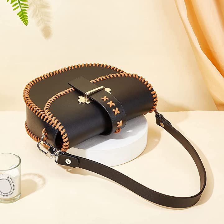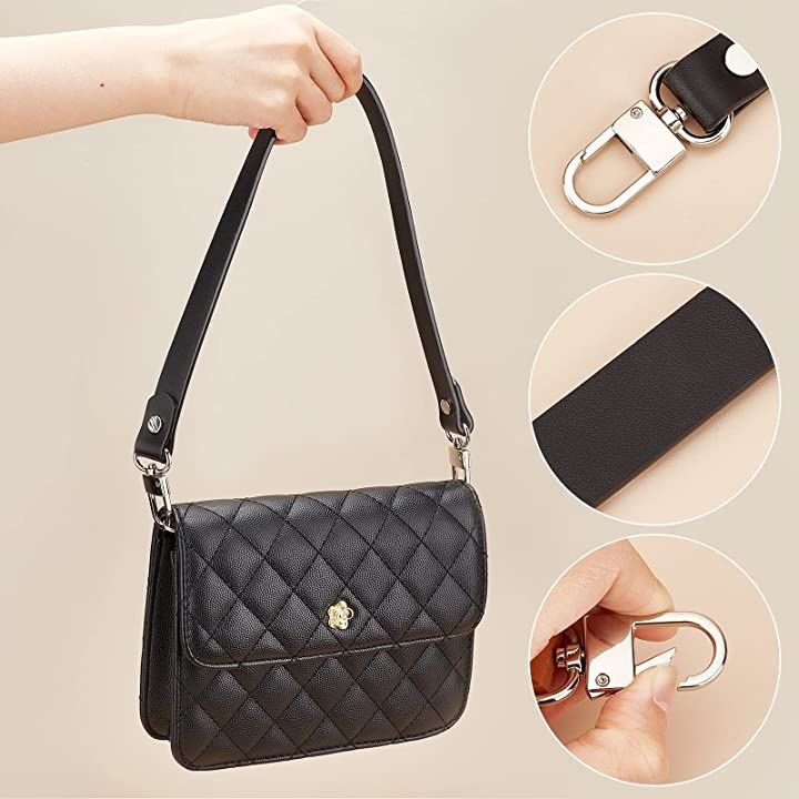 バッグ持ち手 ショルダー チェーン ベルト ショルダーバッグ用 レザーショルダーストラップ 長さ約55CM 黒