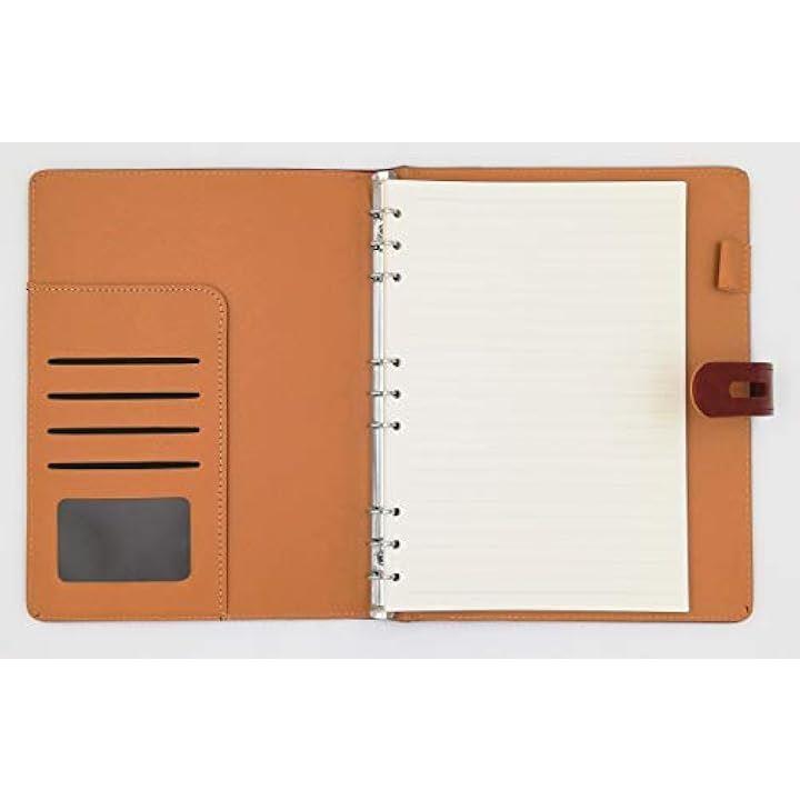 MT's SHOP システム手帳 A5 PUレザー カバー 6穴 リング 罫線 90頁 リフィル付属 カードポケット ペンホルダー搭載 OF359 (黄茶色(罫線)) |