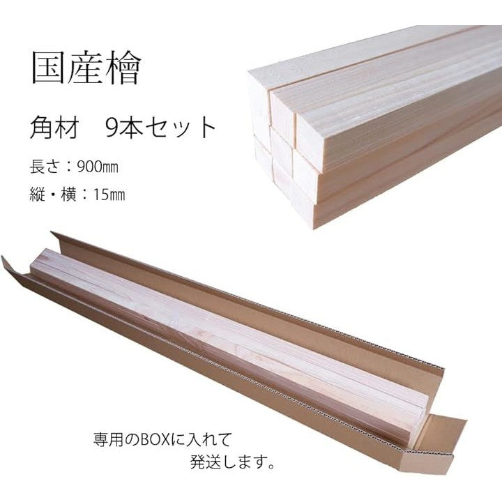 ニル 檜 ひのき角材 15mm x 900mm 9本セット 木材 桧 DIY 工作