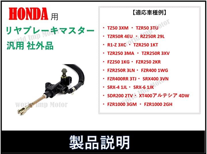 互換品ヤマハ 用 リアマスターシリンダー yamaha 用 FZR250 TZR250 RZ250R R1-Z FZR400RR SRX400 SRX-6 SDR200 油圧 リア ブレーキ リアブレーキ ポンプ 汎用 社外品 |