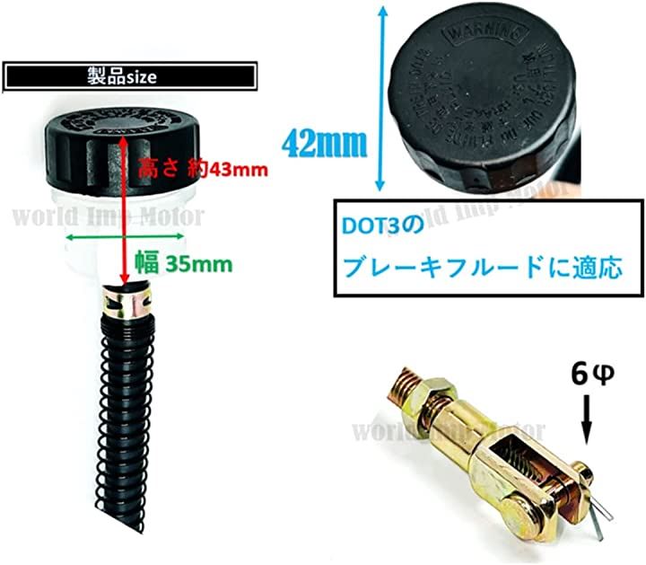 v バンジョーボルト : 10 mm ホース全長:35 cm v 重量:302g vセット内容v 個汎用 リアマスターシリンダー (別体式 タンク 付) 1個 v 経年 劣化 による ブレーキタッチ の悪化や、こういった症状に悩まされていませんか?v 1 ブレーキの効きが悪いと感じる 2 ブレーキレバーが奥まで入る 3 クラッチのキレが悪い 4 レバーをいっぱいに握ると止まってしまう 5 リザーバータンクキャップの内側にあるゴム素材の劣化している 6 ブレーキフルードが外気に触れるので劣化が早くなる 7 フルードが黒ずむ
