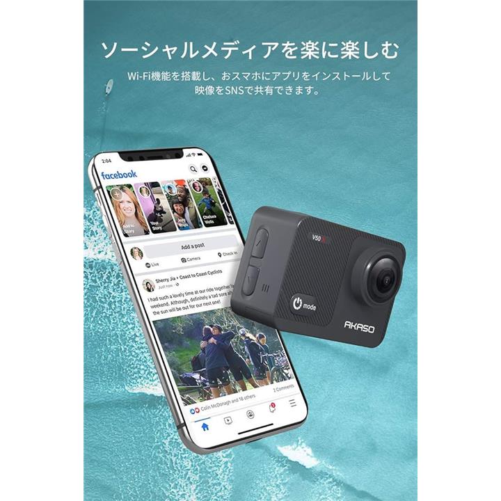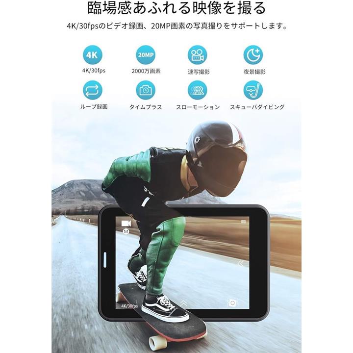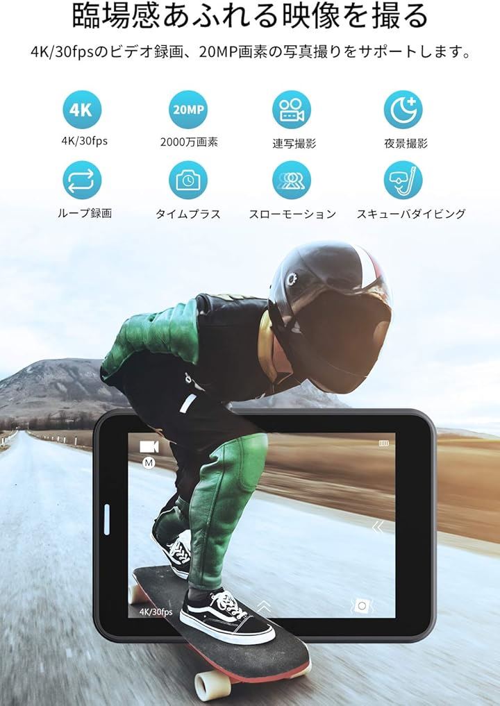 アクションカメラ 4K30fps 20MP 新版6軸手ぶれ補正 WiFi対応 タッチスクリーン式 HDMI出力 リモコン付き